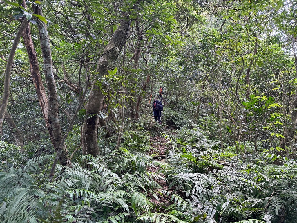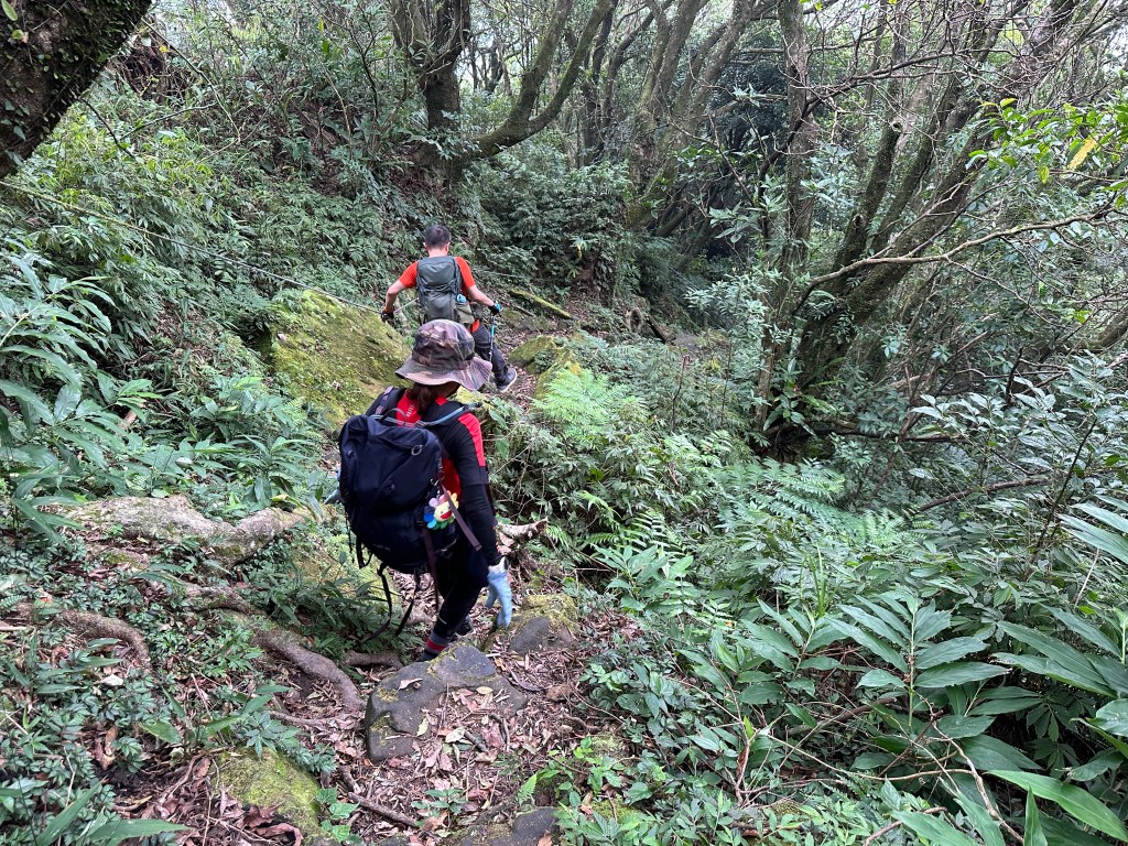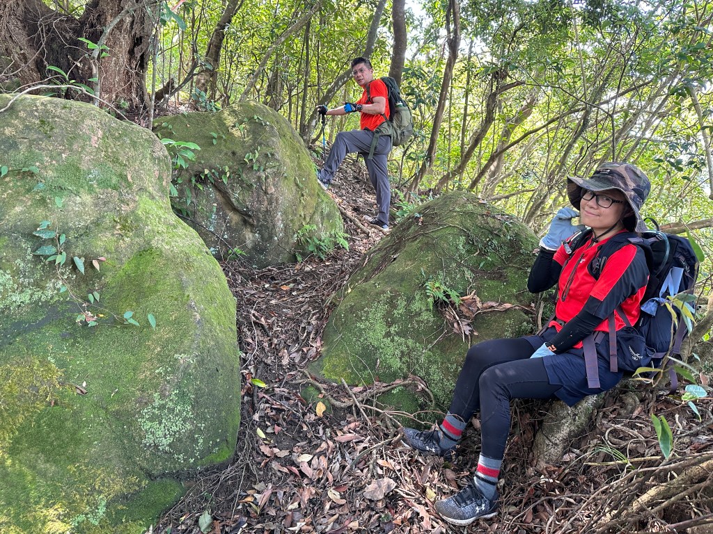 今天要爬之前,Windy天氣預報下午2點會下一小時的超大雷陣雨!因此,一路上一直在思考撤退路線,其中Sonia公務繁忙久未爬山,一路上一直覺得心跳過快?我也一直向其反應如果不適我們隨即撤退!但Sonia都是利用Smile一路拍照攝影的時間來進行休息,偶爾稍微等待一下。