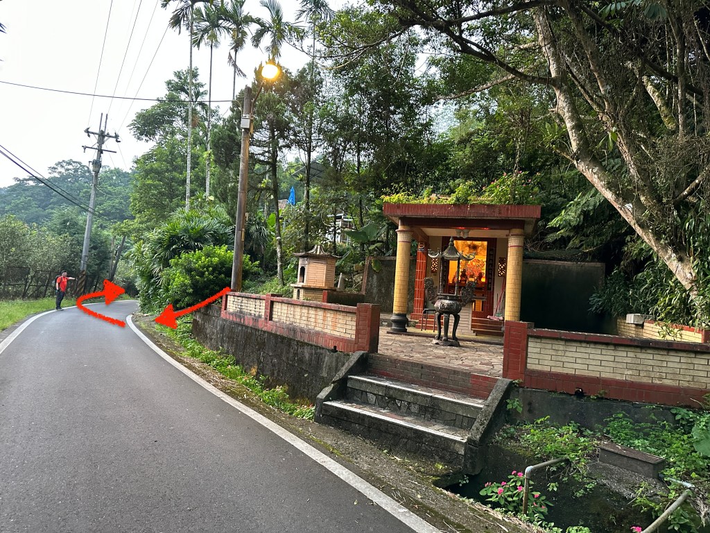 下到茶園區,左轉再走500m很緩和的林道路徑,出登山口來到土地公廟,接著,就是一路沿著北102安坑路走1.7K,再接上110線左轉走1K的距離,右轉走200m進入圓化寺!