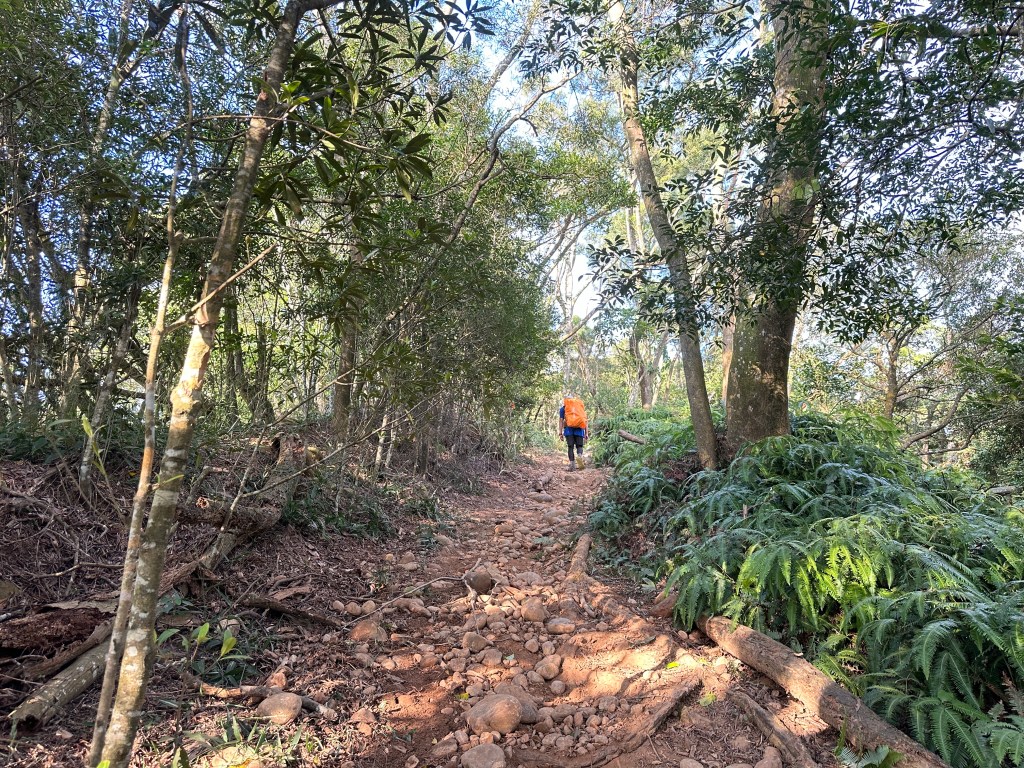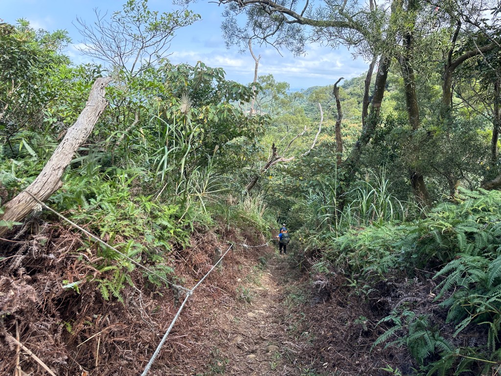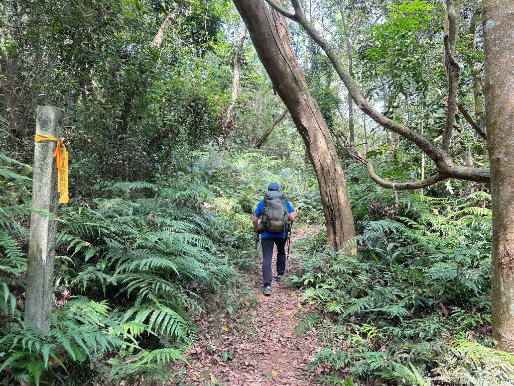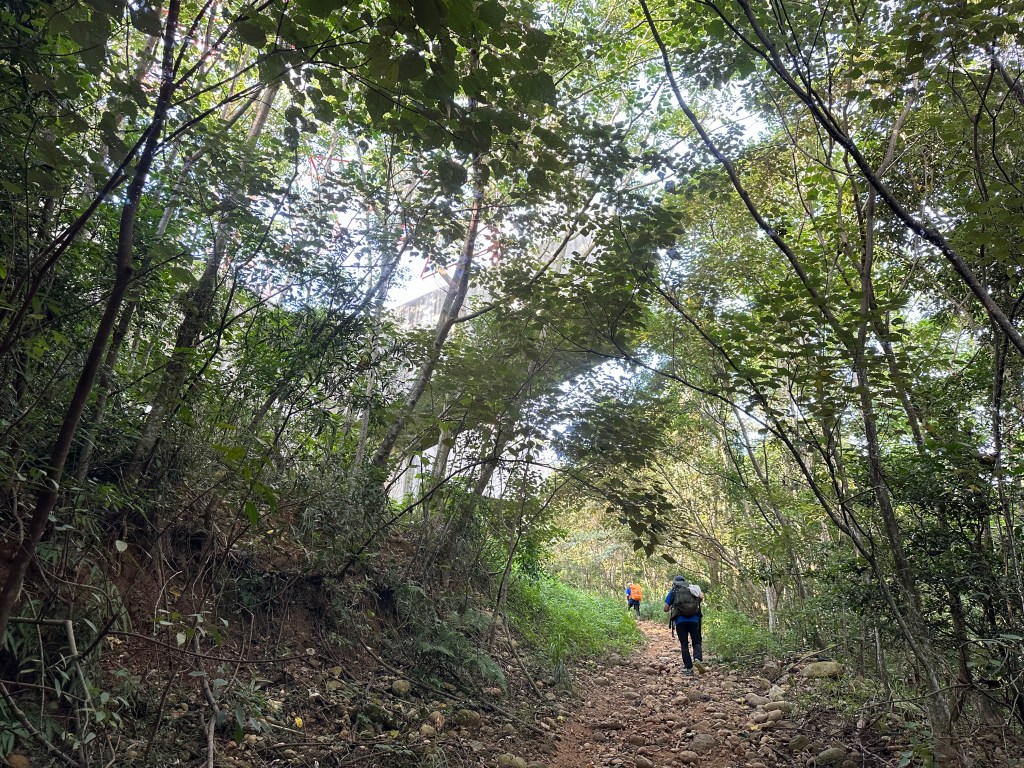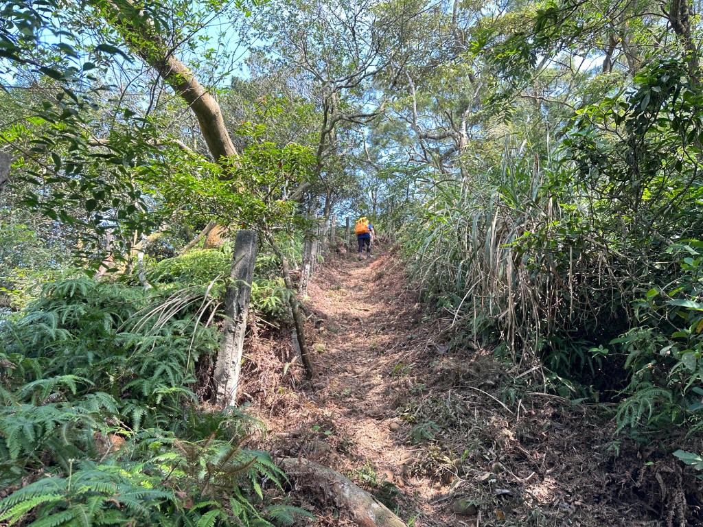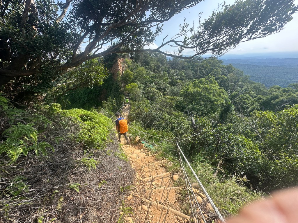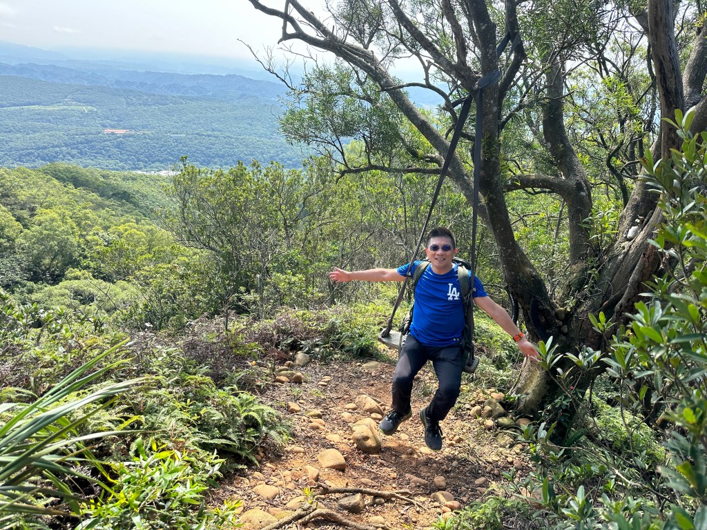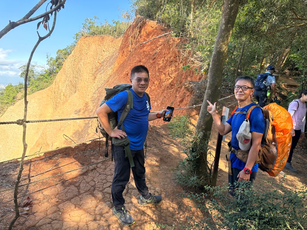 距離3.3K,從H185m陡上到H596m。這幾年,每次來都覺得路徑都稍有調整,應該是火炎山1.7K崩塌路段上的異動調整。果然是熱門山系,可以一路的與山友們噓寒問暖!也可以感受到生意盎然!一遇到陡上,Smile一路唉唉叫!此時,有一位負重的姐姐走在前方,回頭說:妳是花蝴蝶齁!