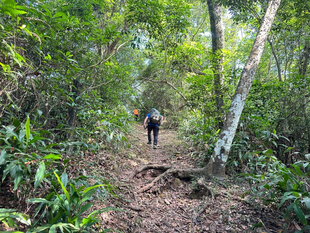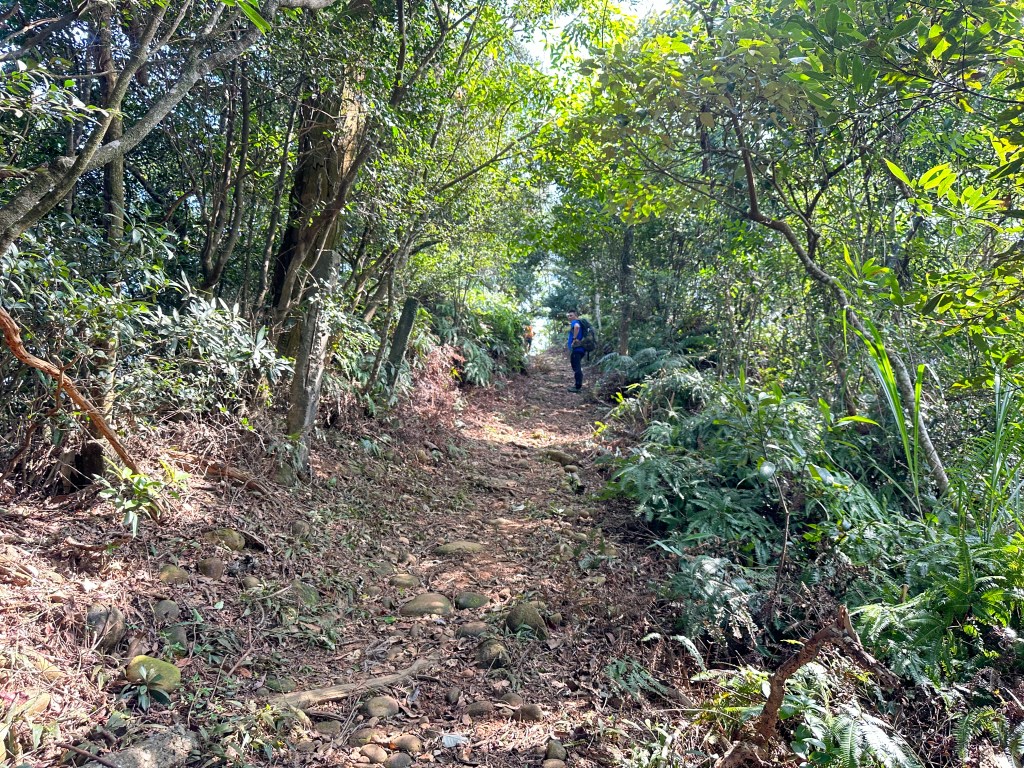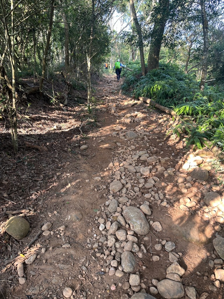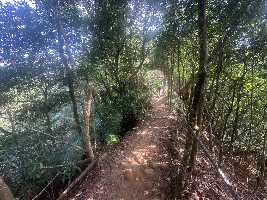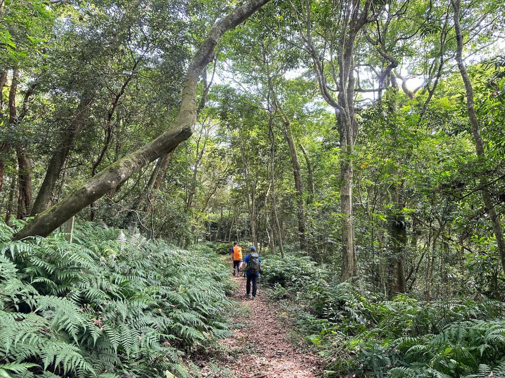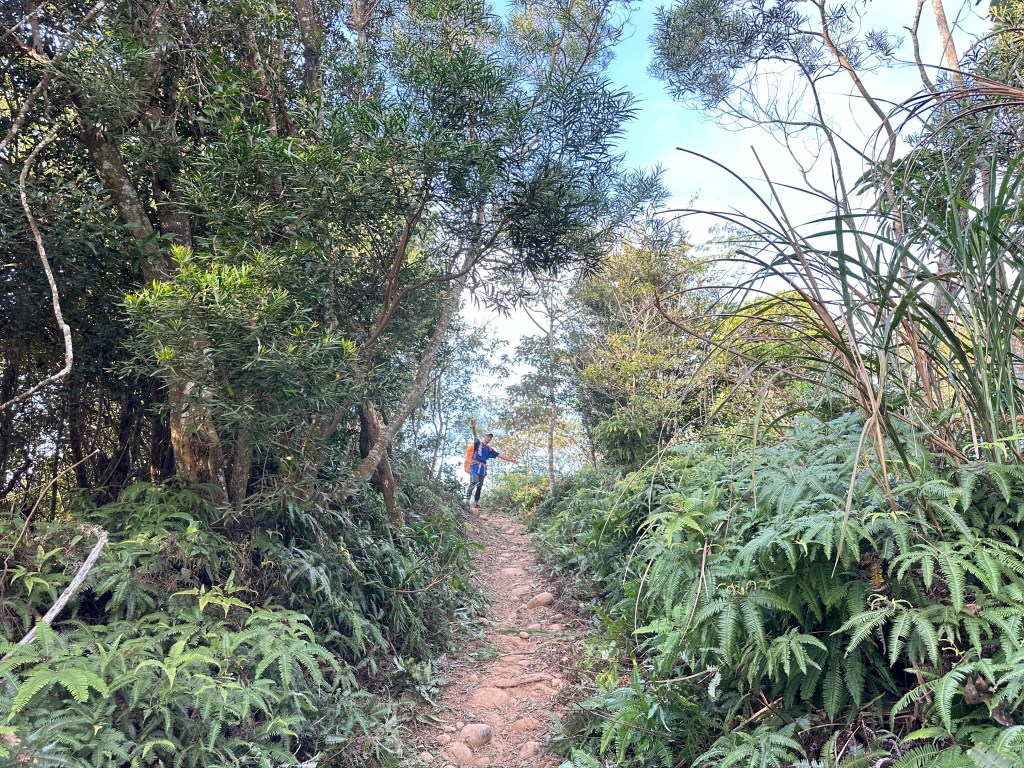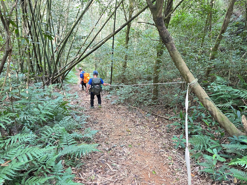 距離3.3K,從H185m陡上到H596m。這幾年,每次來都覺得路徑都稍有調整,應該是火炎山1.7K崩塌路段上的異動調整。果然是熱門山系,可以一路的與山友們噓寒問暖!也可以感受到生意盎然!一遇到陡上,Smile一路唉唉叫!此時,有一位負重的姐姐走在前方,回頭說:妳是花蝴蝶齁!