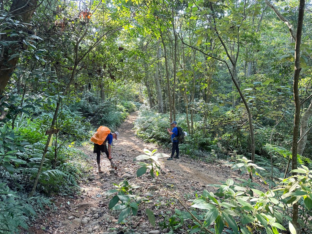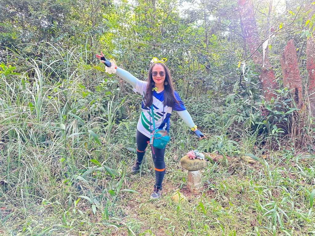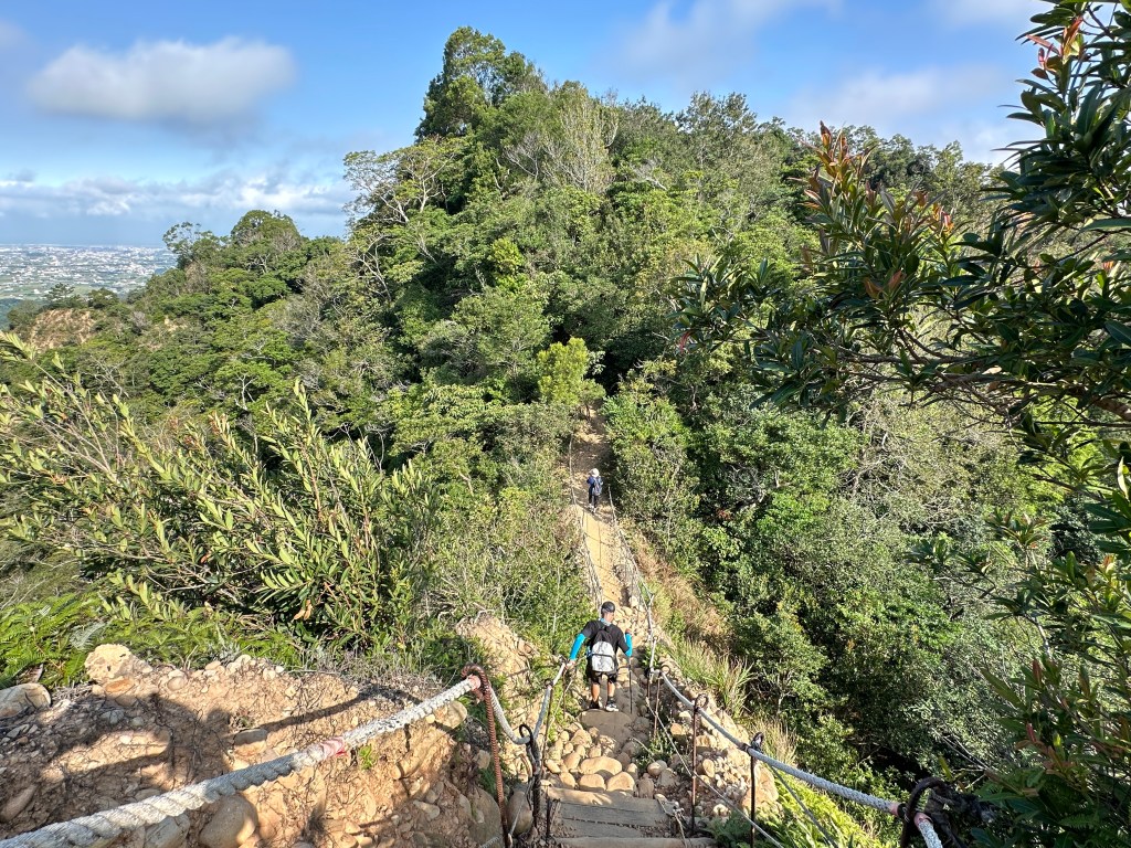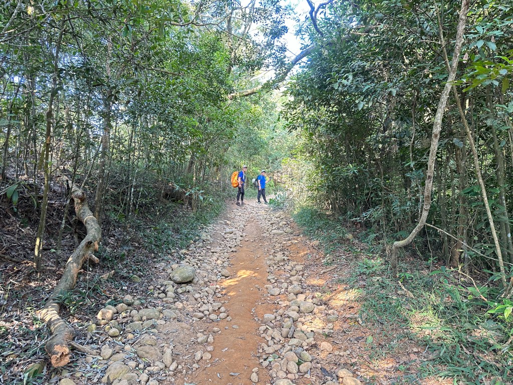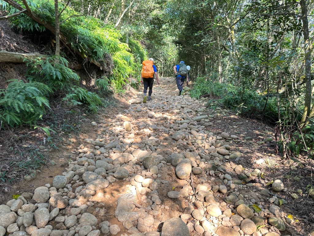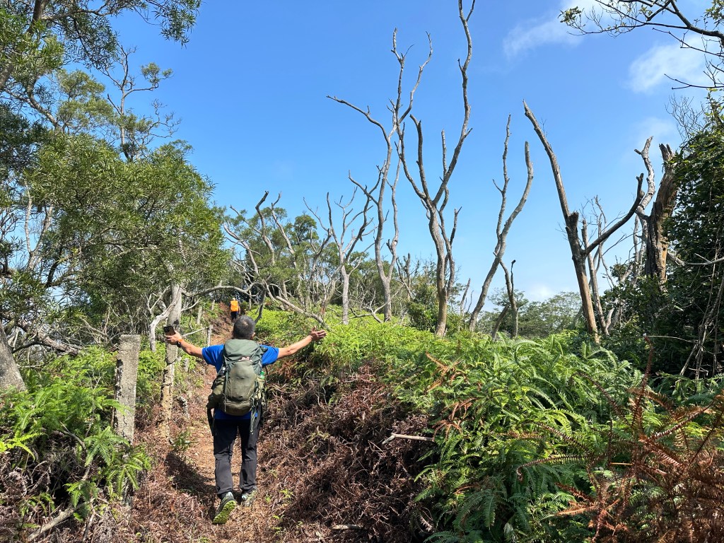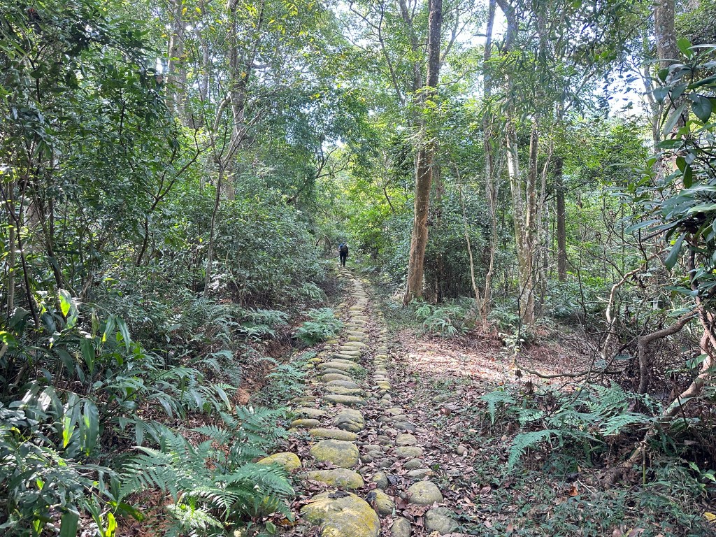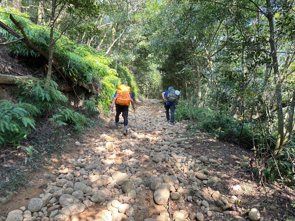 距離3.3K,從H185m陡上到H596m。這幾年,每次來都覺得路徑都稍有調整,應該是火炎山1.7K崩塌路段上的異動調整。果然是熱門山系,可以一路的與山友們噓寒問暖!也可以感受到生意盎然!一遇到陡上,Smile一路唉唉叫!此時,有一位負重的姐姐走在前方,回頭說:妳是花蝴蝶齁!