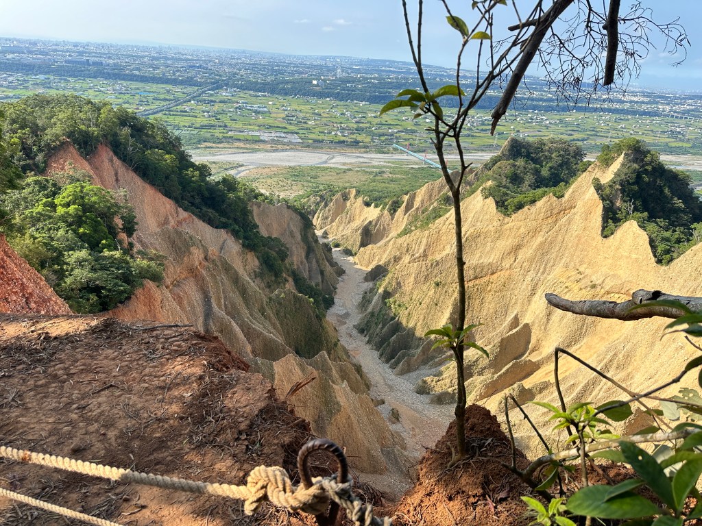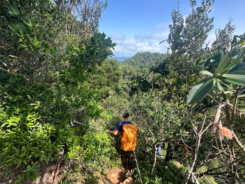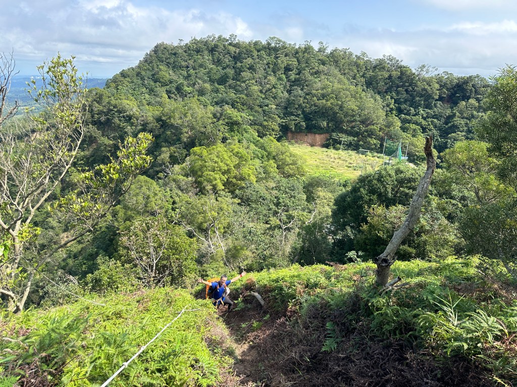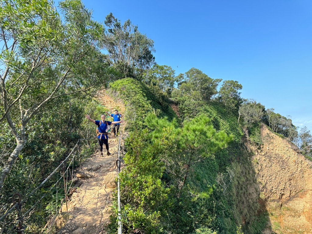 接著,持續V型的陡下陡上,來到604峰,看到山頭上有一個令人驚艷的盪鞦韆!接著要沿著幾乎垂直的鋁梯陡下,這一段陡下的縱深蠻顯著!接下來還要經過好幾次的深V陡上陡下的過程。