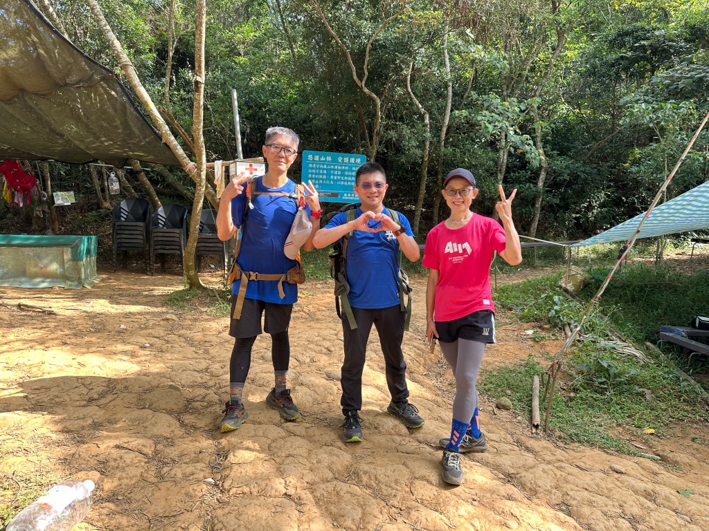 幻燈片:一下到三粒石土地公岔,看到這裡有大隊人馬正在集合。其中一位葉美女(葉碧惠),指著我,說:你、你(叫不出我的名字,是正常的!)、你老婆在那裡?我好喜歡你們喔!我說:Smile已經衝到前面了!此時,Smile已經走到上坡的位置,我馬上把她叫下來!09:43