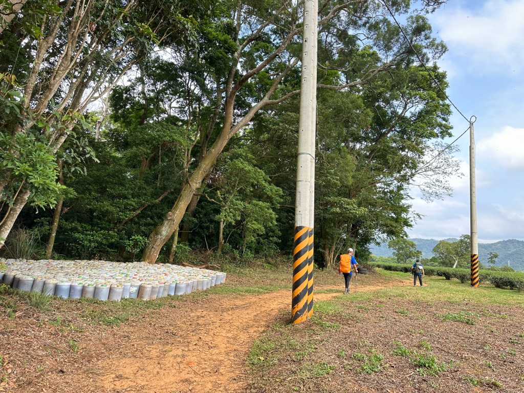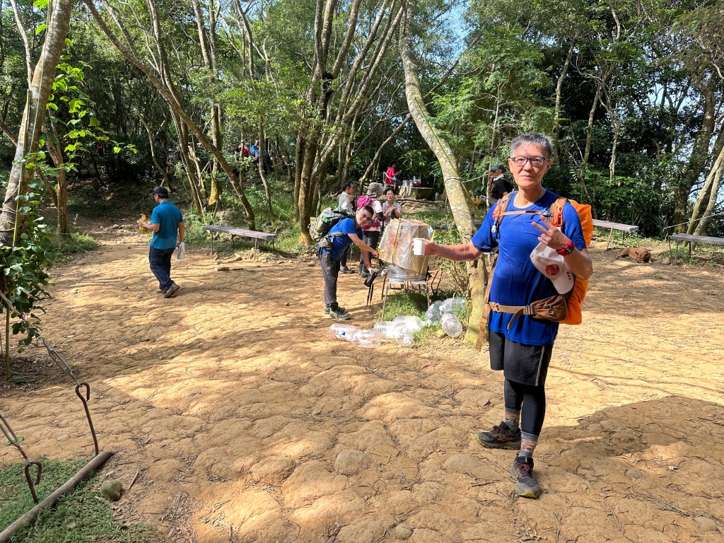 我突然有一點不好意思,聽著Smile唉唉叫!覺得我們是毛毛蟲啊!來到火炎山3.2K的奉茶鞍部,這裡有兩大桶的冰水及冰仙草茶,真由衷佩服運上來的大哥!當你走到熱熱虛脫的時候,突然來一口冰涼仙草茶