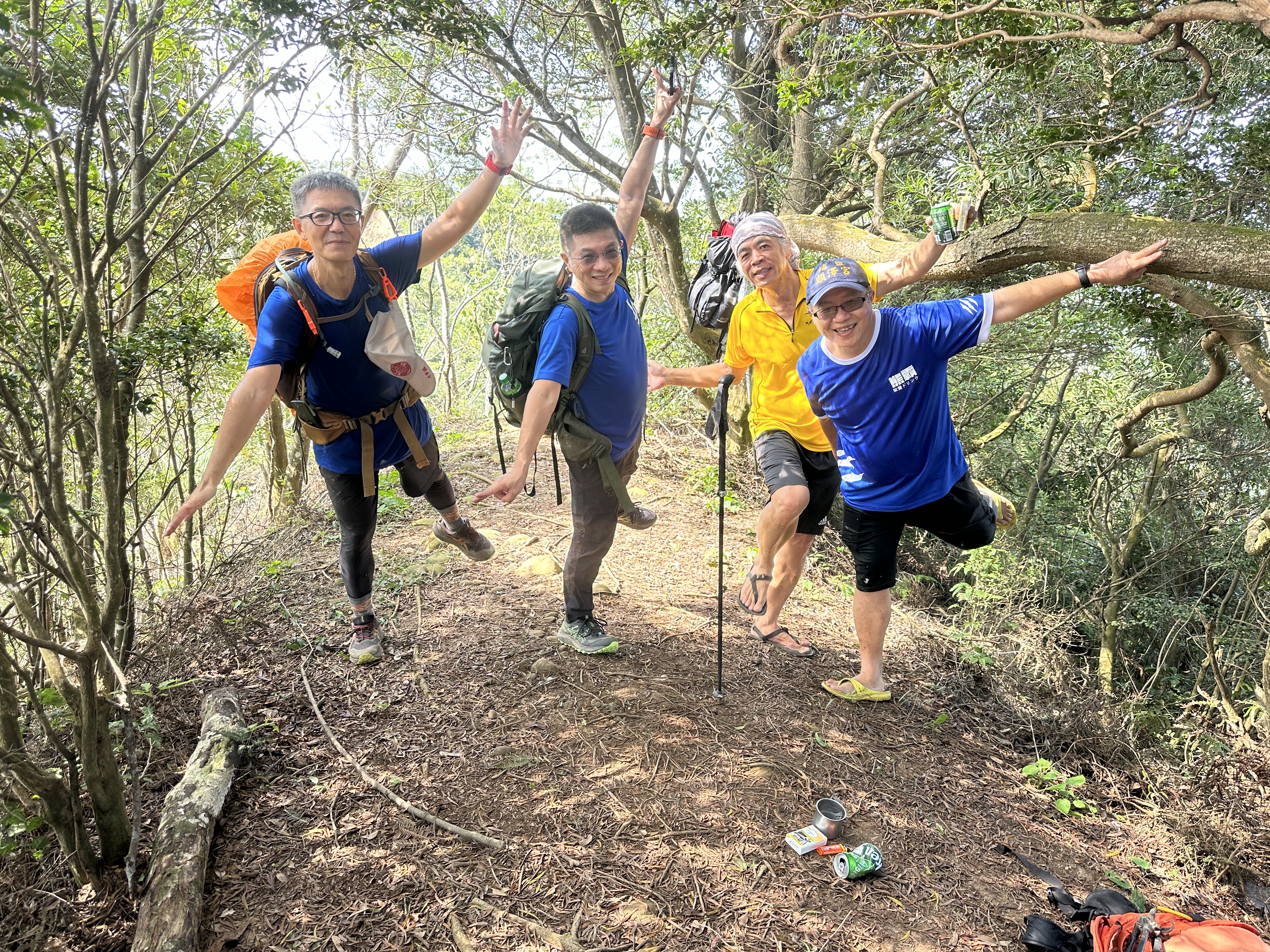 距離上有2.6K,V型陡下陡上大約有10次,每一個山頭到鞍部大約都在20m到30m的落差,還以為這一段不難走?走起來,很硬啊!而且都是急陡下急陡上,途中遇到朱兄與廖兄兩位大哥正在山頭上休息,Smile大膽的跟兩位大哥要了一罐啤酒喝!喝完後,還請兩位大哥將啤酒罐帶下山!哈哈!