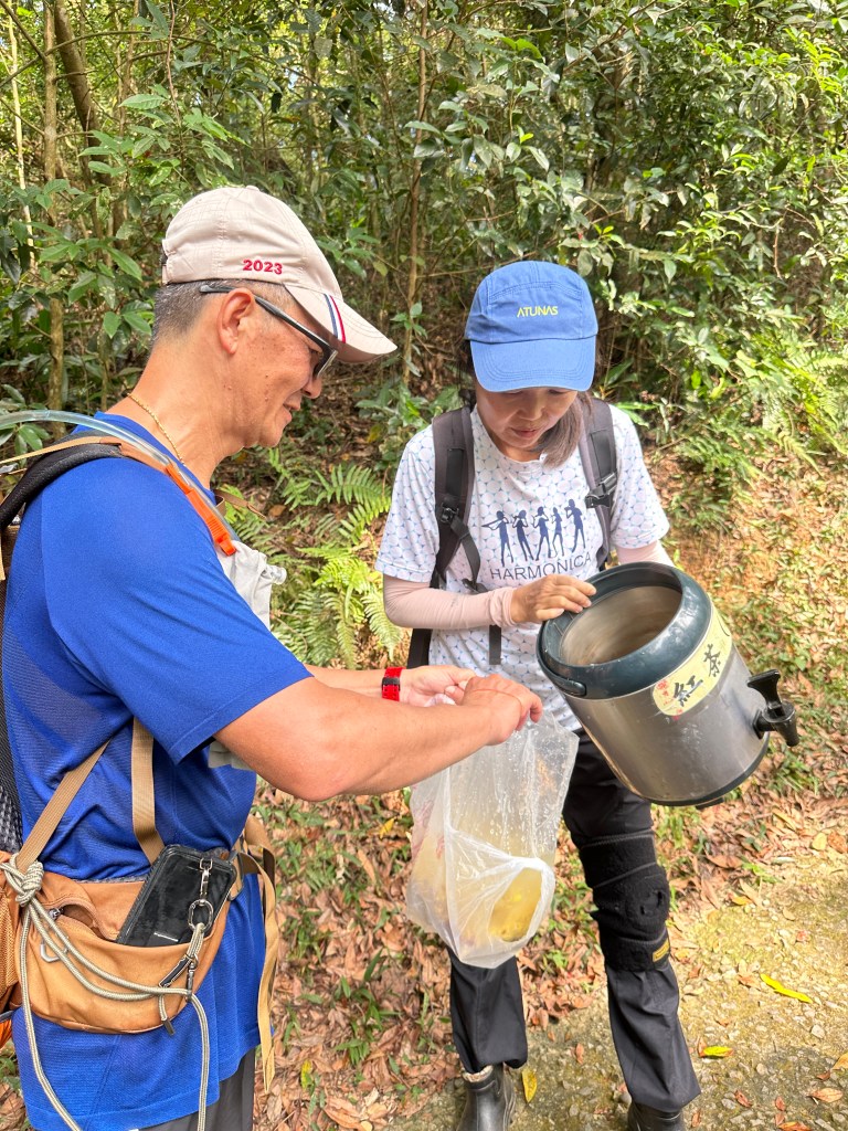 我們跟他們要了一袋,順便將冰塊給放入,打算走到慈濟山再來休息好好享受。