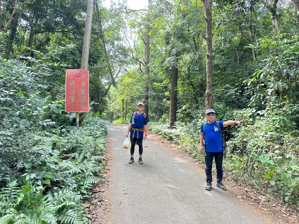 上圖:陡上木梯後,沿著產業道路繼續陡上,此時恰好苗栗通霄苑裡社區大學古道班的大隊人馬也正在陡上,他們今天來維護步道,目前正要完成回到上方的停車場,問我們需不需要八寶粥,而且也有冰塊。11:08