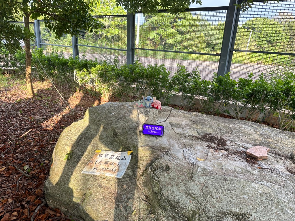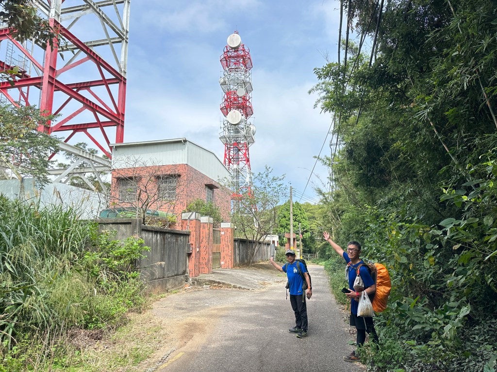 離開長潭坑山,先回走500m回到第二個大型電塔,右轉繼續沿著山徑走1.5K可接上苗38鄉道,這其中就會陡上且接上九華山沙漠區(這名字是我自己取的,為了方便辨認位置)。接上苗38鄉道後,繼續往前直走250m可抵達九華山大興善寺的停車場,由停車場走進去即可找到茄苳崑尾山,或稱為九華山,其位於鐵網圍牆邊,必須要找一下!但因為我們是第二次來到,知道位置在那裡,就不需要再尋找。