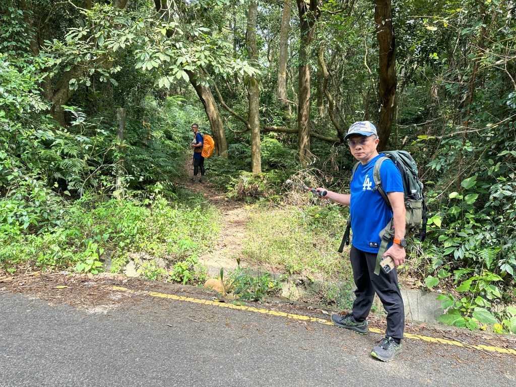 這一段距離有18.2K,大半的路徑都是緩上緩下。由裕隆土地公沿著木梯一路陡上,一直陡上到廣播電台,發現這裡有停車場,也顯示可以將車開到這裡。我們沿著產業道路參酌離線地圖上的路跡而走,結果發現產業道路上有深鎖的鐵門,也有告示牌上寫著:「軍事用地禁止進入」。因此,我們再度退回走300m,回到產業道路的三岔路口,接著往右轉走100m,即可看到產業道路的左岔有岔路,由此進入平緩山徑步道才是正確。