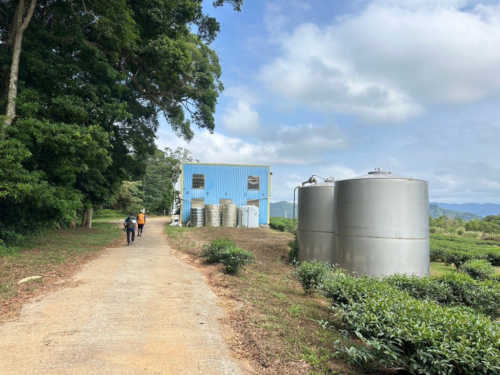接近130線前的路徑亦是急轉直下,看到130線公路後的路徑會略高於公路且沿著公路旁而走,往右切出接上130線公路後,過馬路直接往對面的產業道路陡上,入口有慈濟茶園的告示牌,這一段還得繼續陡上。當路徑轉為平緩後,整片的慈濟山茶園(廣盛茶園)立刻印入眼簾!