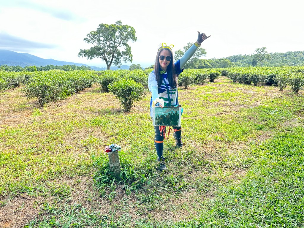 往前走500m的茶園左岔進入走100m,大坪山躲在山坡旁的芒草堆中,要走進入芒草堆才能看到!我們為了方便以後經過的山友,有特定的綁上一些布條,只要看著布條走進來就可以找到。