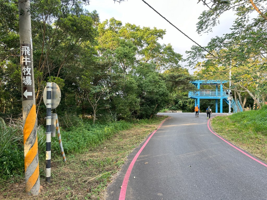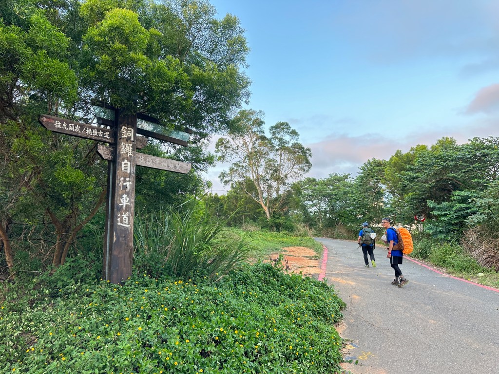 先由茄苳崑尾山旁的苗38鄉道往銅鑼天空步道走,會先看到銅鑼自行車道的起點,沿著自行車道走,接著會經過銅鑼天空步道,前一段是天空步道,後一段是天空吊橋。恰好走到這裡適逢黃昏,襯托出天空步道的幽美。