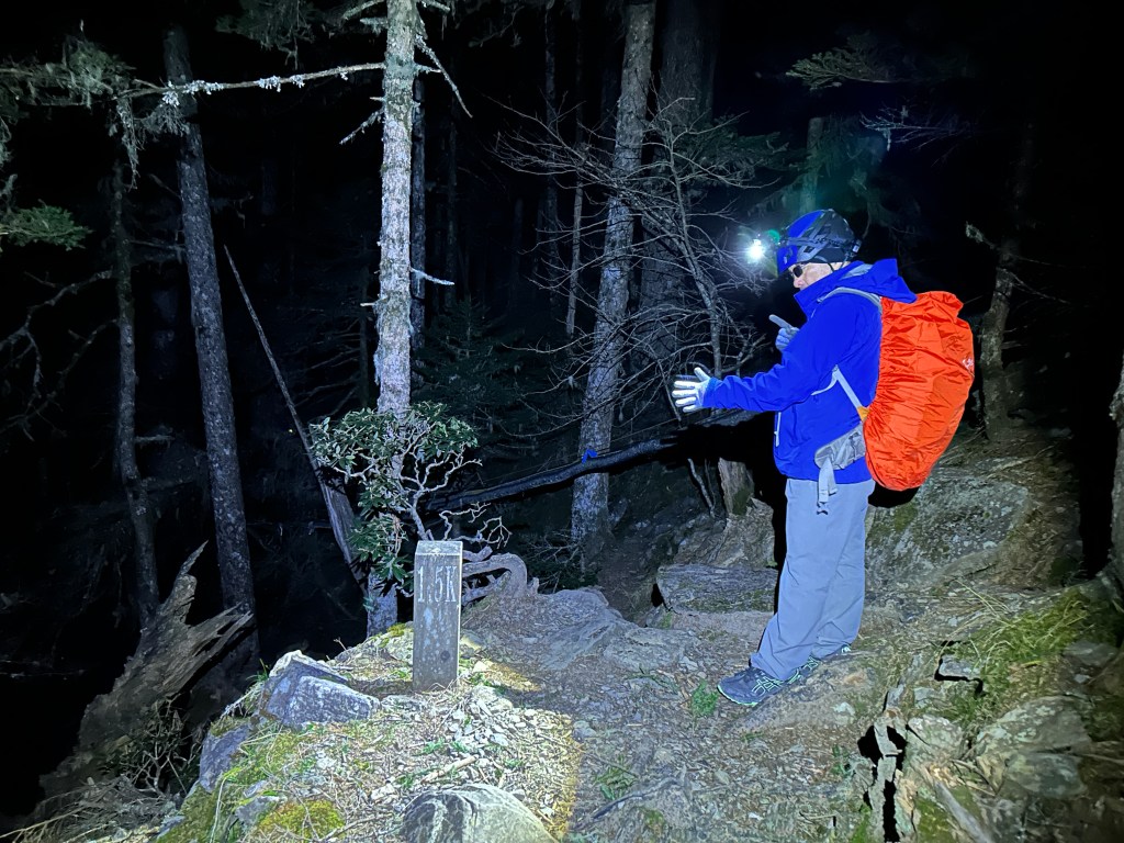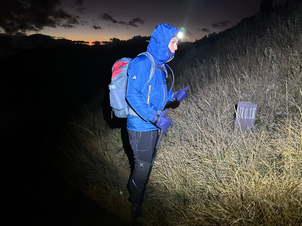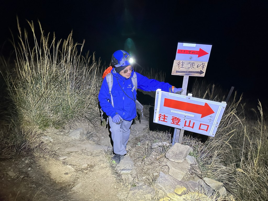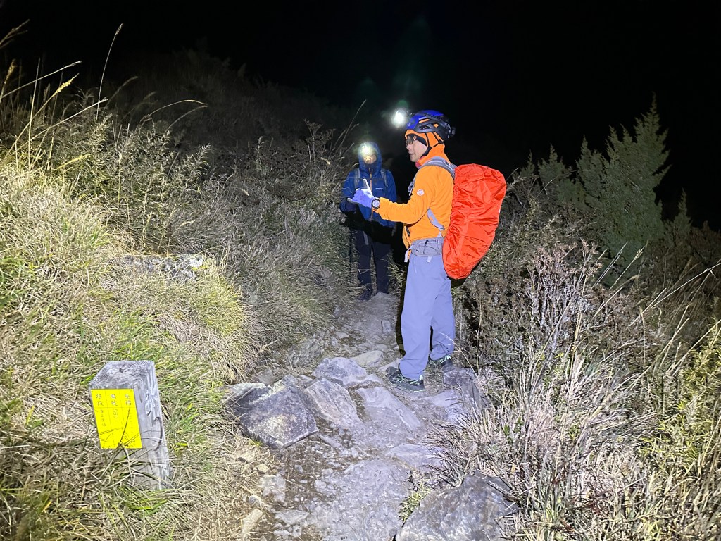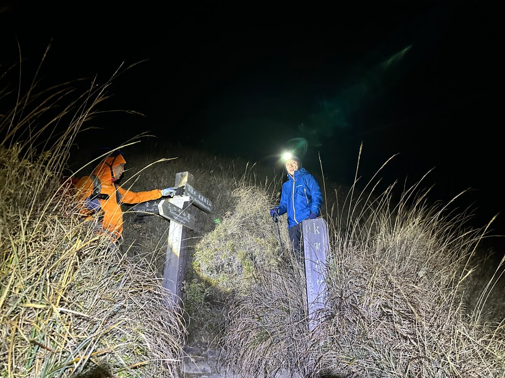 當然,我也知道陡上就是Smile的罩門,但偏偏Smile又很耐走,可以一直連續走24小時沒有問題。陡上到了4K觀景台,嘉鴻老早就在此等待我們兩位的到來。這個觀景台印象中兩年前就拆掉了,應該是要避免有人將帳棚搭在這裡吧?這一晚寒風刺骨,這一段又花了一個半小時。