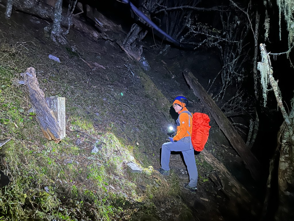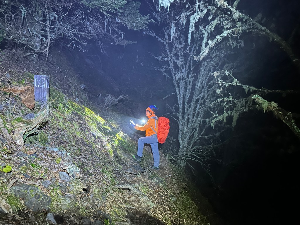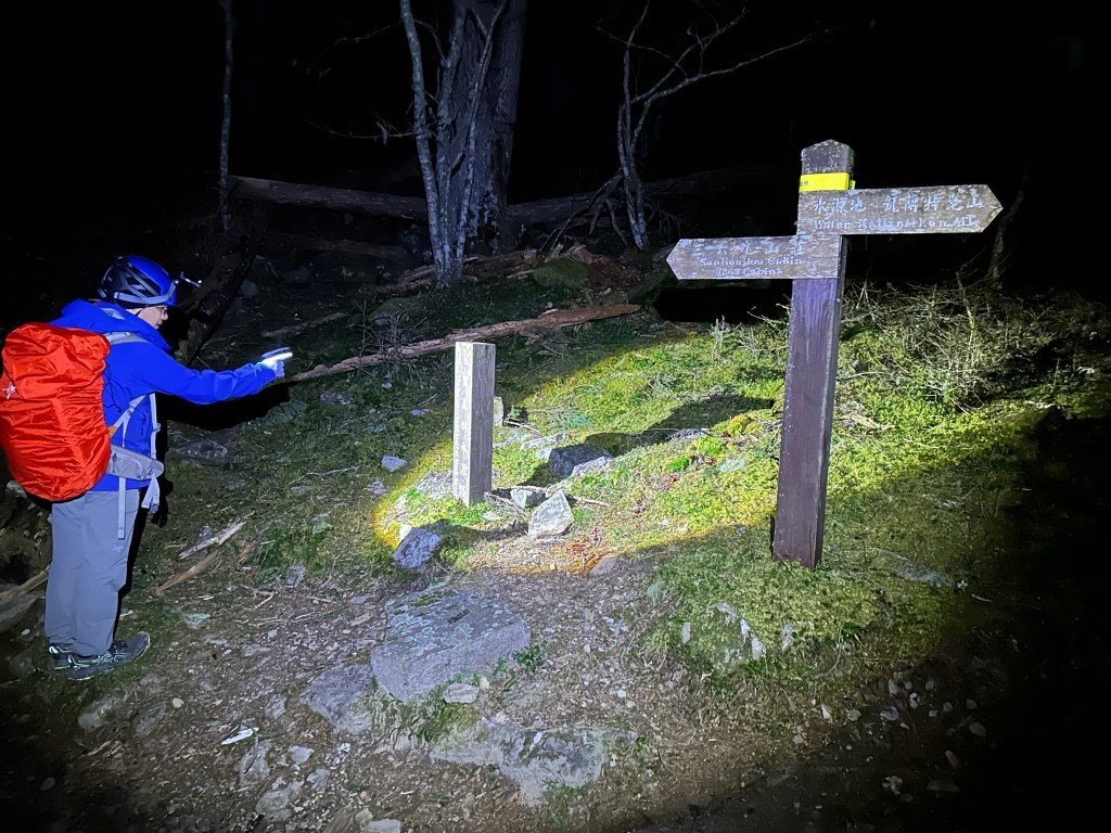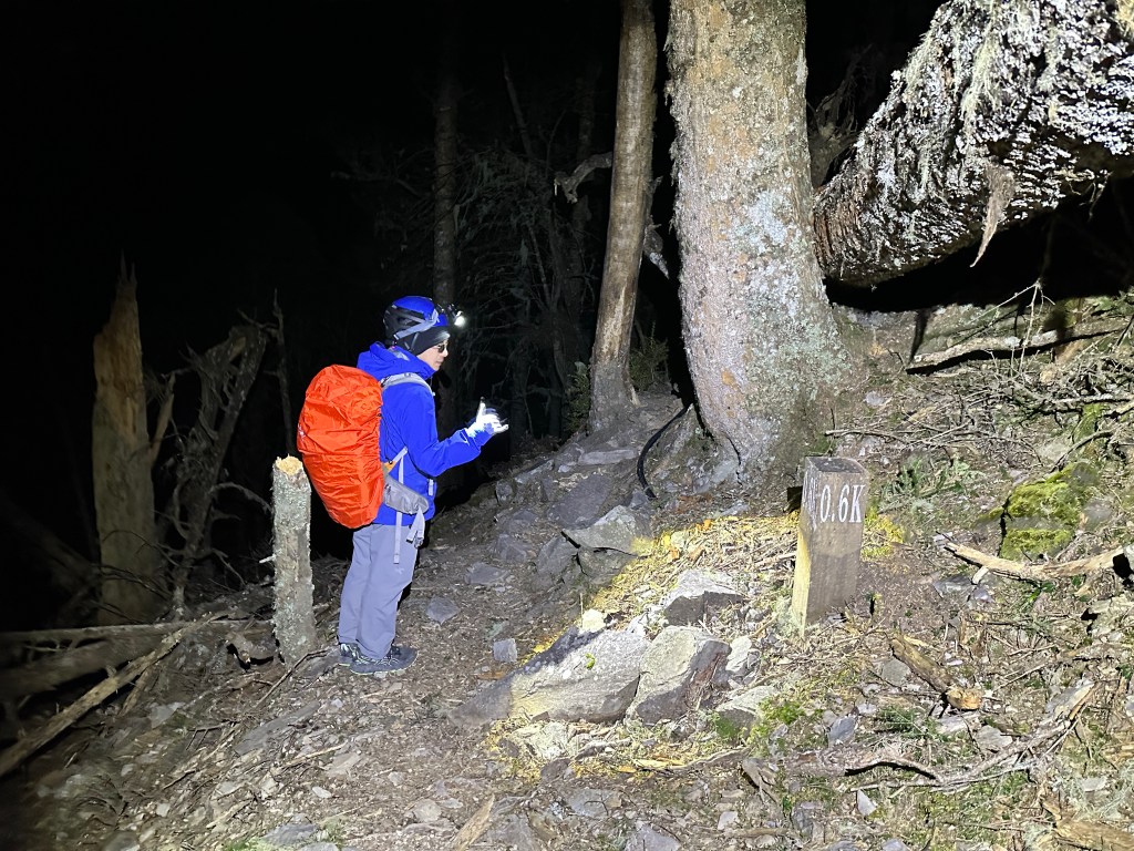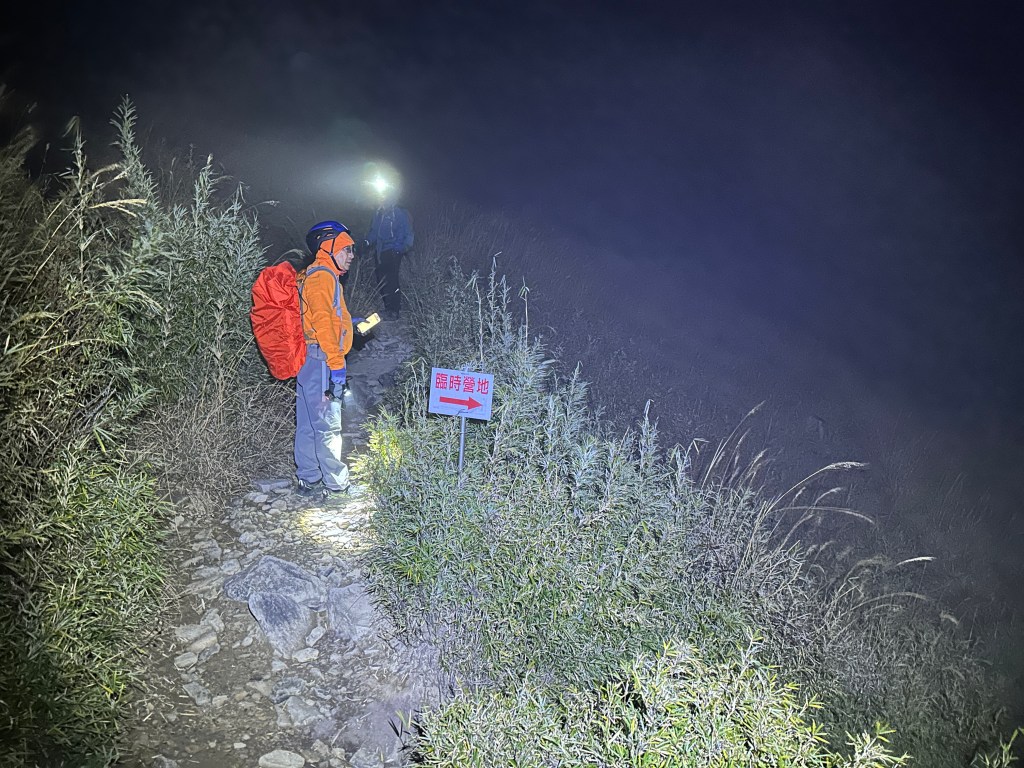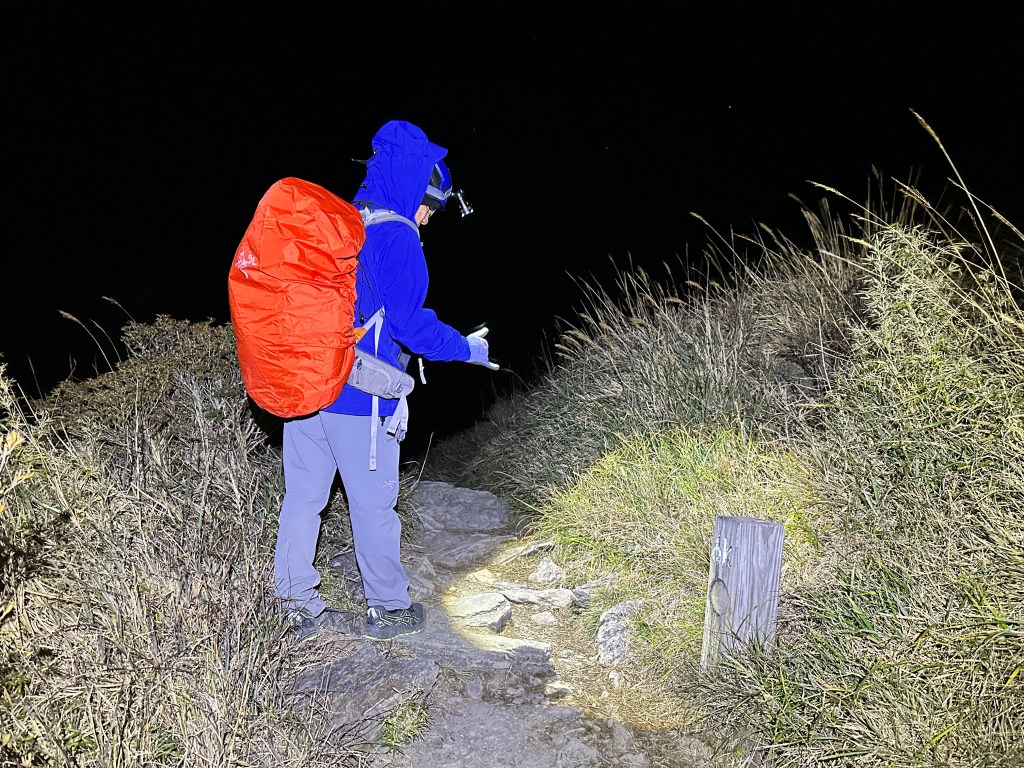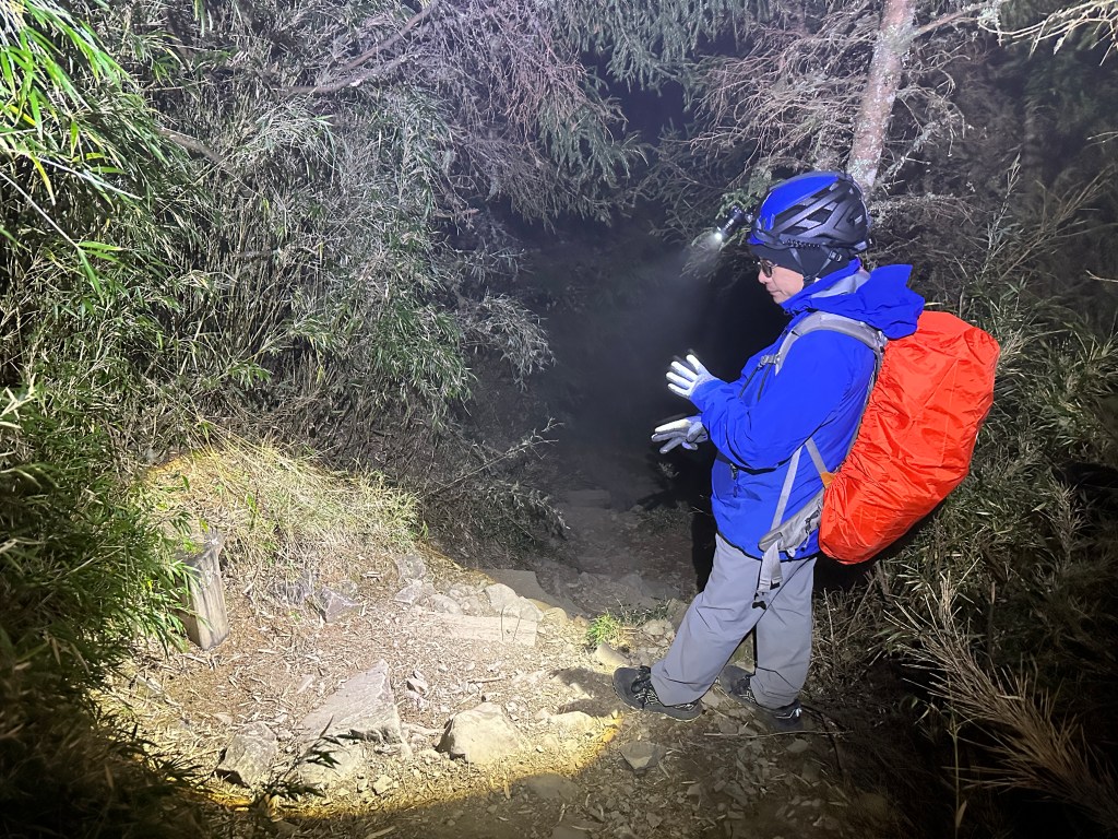 原來預計在清晨4點左右就要抵達369臨時營地,但起登不久就發現Smile又開始跟不上嘉鴻跟我(Gosen),只能走走停停等待Smile跟上,這過程中我的腦海已經閃過很多次「如果太晚,就在中途放棄今天的行程」。