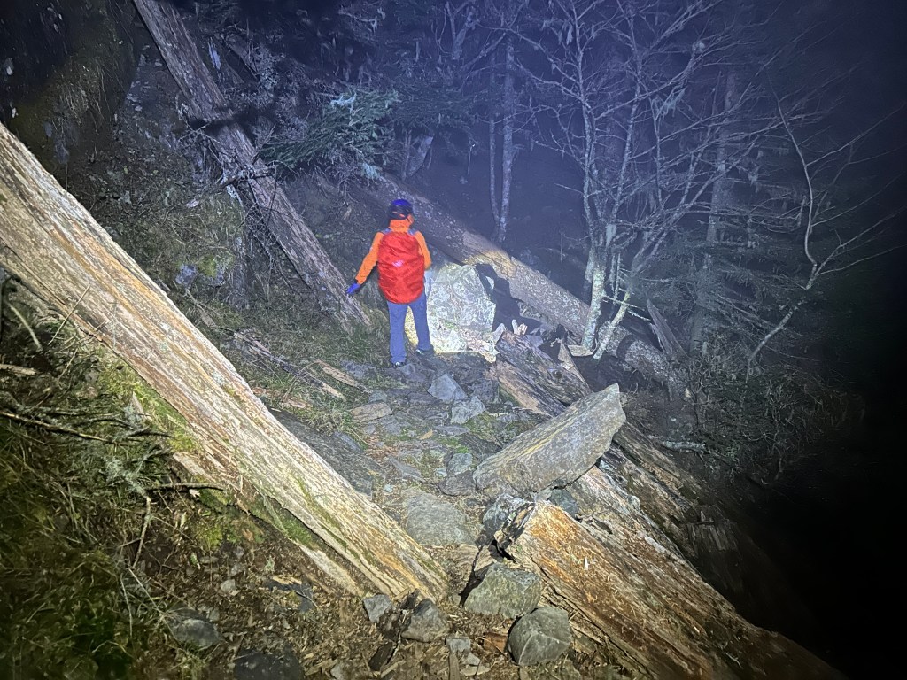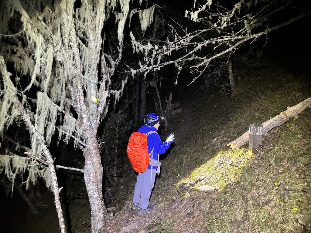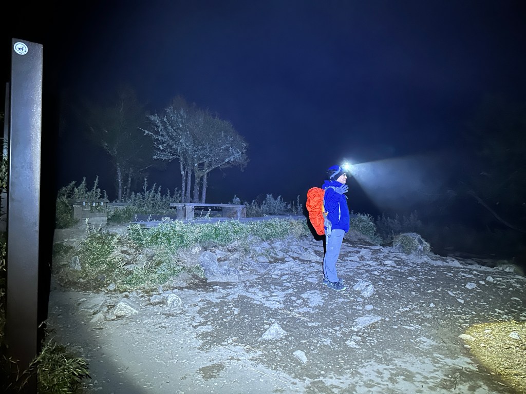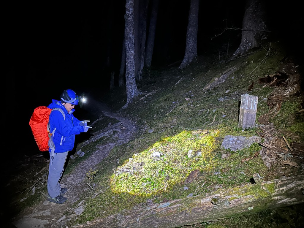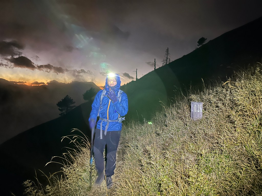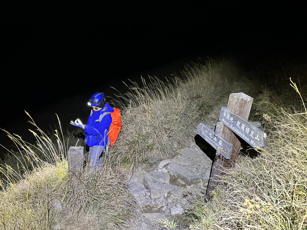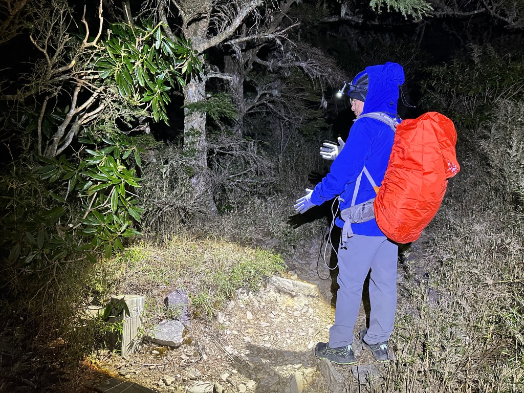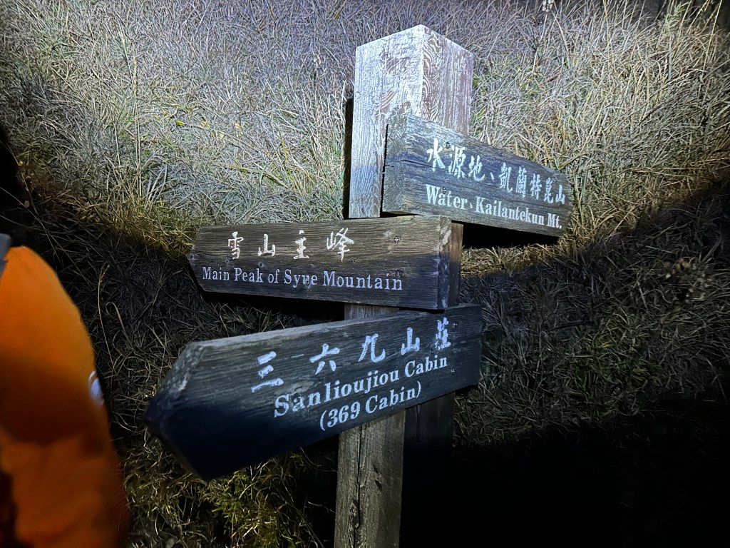 原來預計在清晨4點左右就要抵達369臨時營地,但起登不久就發現Smile又開始跟不上嘉鴻跟我(Gosen),只能走走停停等待Smile跟上,這過程中我的腦海已經閃過很多次「如果太晚,就在中途放棄今天的行程」。