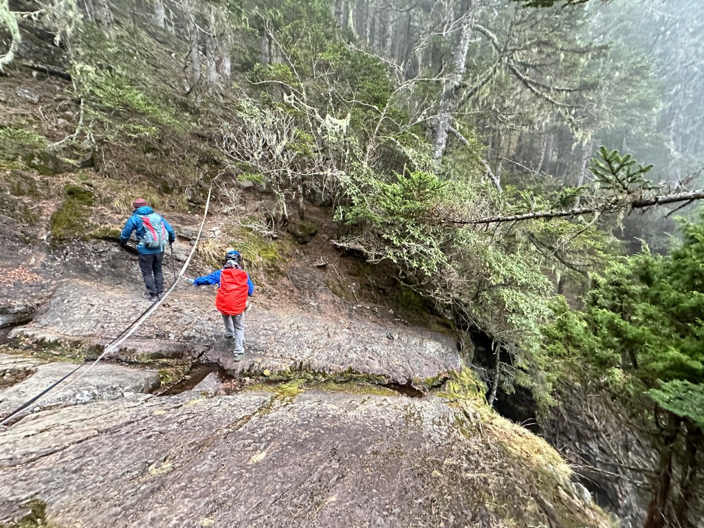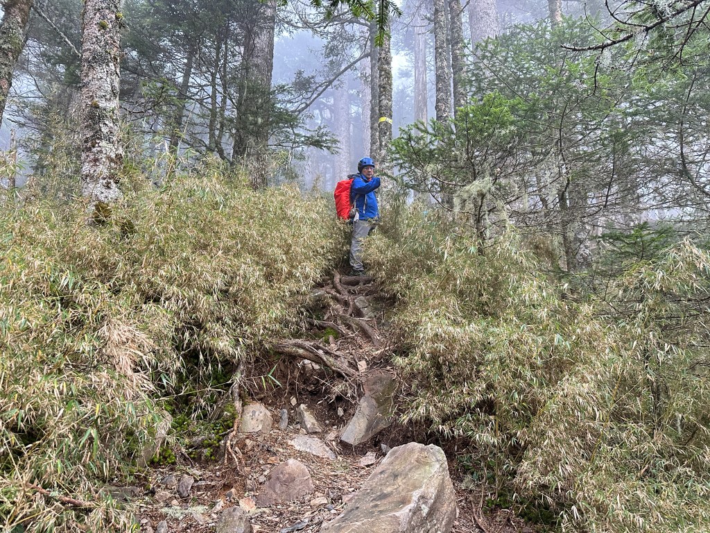 接下來要步入雪山主峰步道4.1K到4.4K的哭坡,其實走了這麼多次的雪山主峰步道,並不覺得走哭坡就一定會「哭」?這300公尺要陡約110m的高度,嘉鴻與我一路都領先Smile一段,再等待Smile龜速的到來,哈哈,其實內心是可登頂也可不登頂,倒也沒有這麼在意Smile的浪慢哭坡!