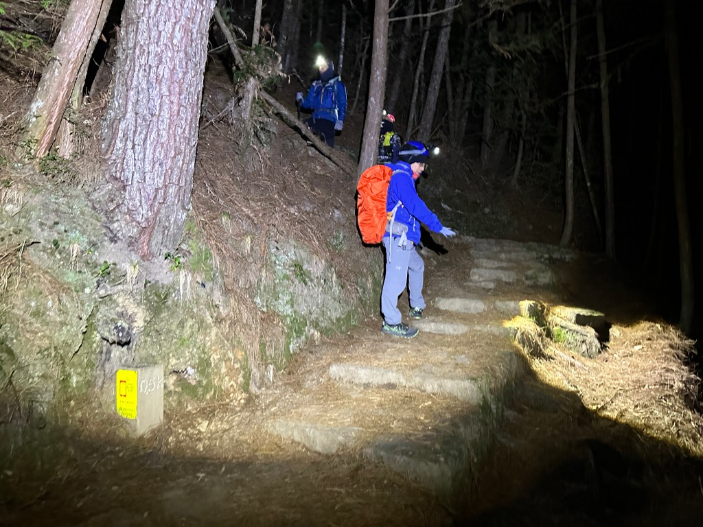 由於路程頗長,請朋友們一定要準備好照明設備及足夠的備用電池。另外,也要準備一些能補充熱能的食物。由於陡升陡降都超過2000m,體能上必然要具備耐走且曾長時間行走的經驗,否則對膝蓋、雙腿肌肉都會是很大的考驗!