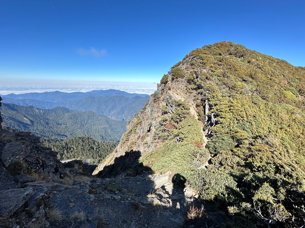 我跟Smile說,只要能在早上9點前登上聖稜線,我們就去完成雪山北峰吧!其實,Smile的慢,除了陡上的因素外,還有就是拍照、攝影實在太多了!