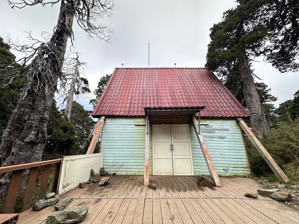 花了20分鐘回到雪北山屋,取回背包正待要離開時,恰好此時有兩位女山友也正走到山屋,她們兩位今晚是要住進這個童話世界的小屋裡。其中,一位認出了Smile,直說到每次登山前做功課,都有看到我們所分享的文章,四人一聊下去彷彿時間無窮無盡,拉回來!在此相談又延遲了20幾分鐘回程。其實,我內心一直在估算,能不能在天色全黑前通過黑森林1.6K的轉彎處?