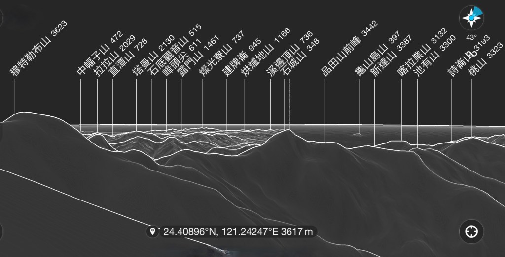 這聖稜線的稜線路徑都很好踩踏,但因為都是在瘦稜上,視覺效果上有驚險效果,但常爬中級山或百岳的朋友應該會覺得還算是安全。一路都在海拔3600m的高度上行走,處處大景,往後看可以看到今天雲霧籠罩中的雪山主峰與北稜角。往左側可看到遠方的加里山等,但今天的左側強風猛吹雲霧飄渺幾為白牆。往前看雪北也是偶爾探頭而出,但往右側看過去,南湖大山、中央尖山、武陵四秀、大小霸尖山,甚至於369臨時營地都歷歷在目異常清晰!