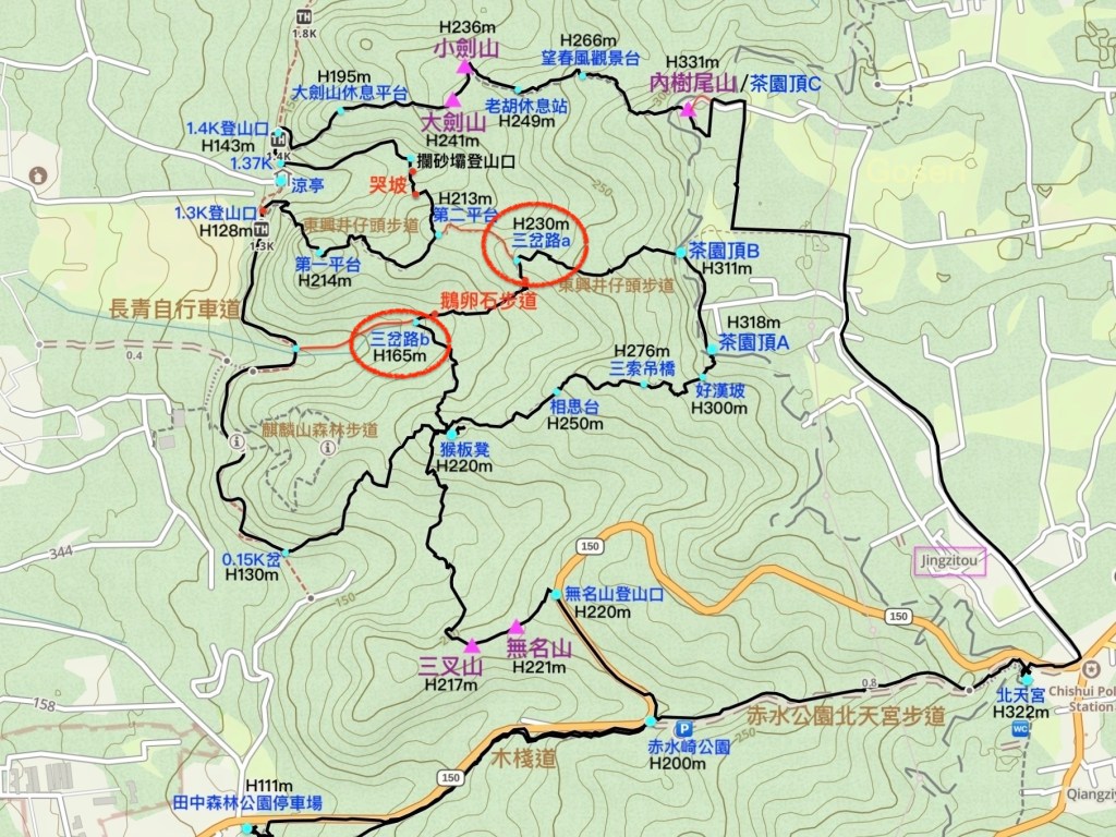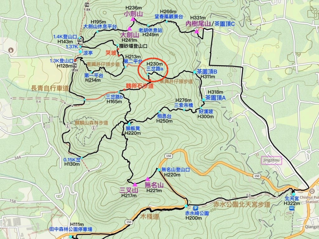 (3)由田中森林公園停車場經無名山、三叉山到猴板凳