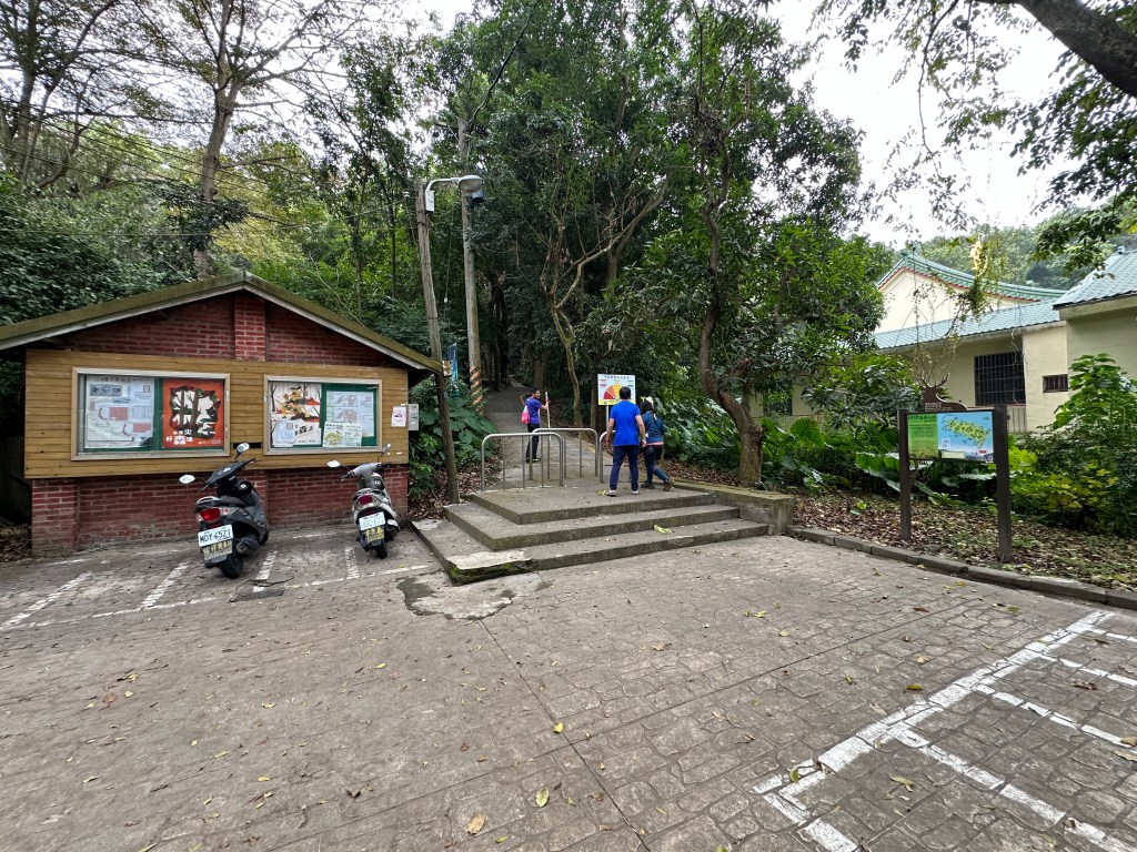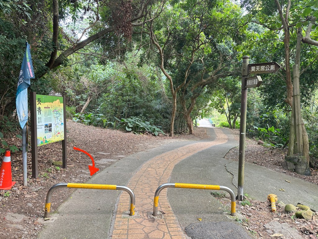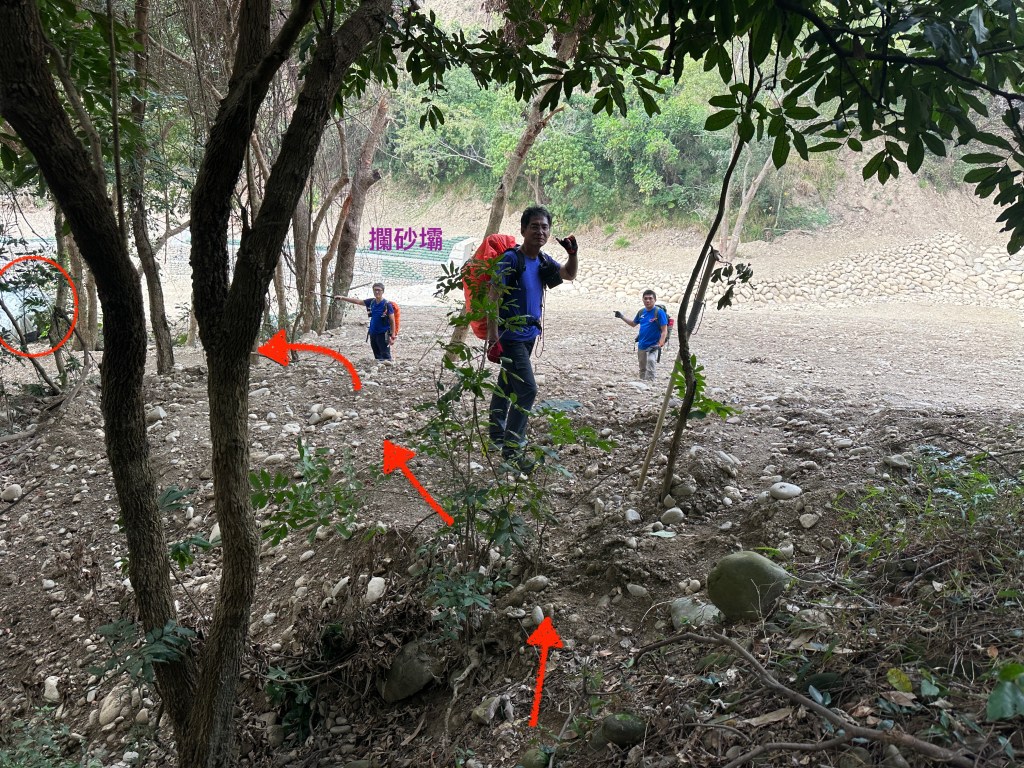 繼續沿著哭坡陡下且穿越攔砂壩接回自行車道約1.37K處,繼續走到1.4K時這裡就是大小劍登山口!這是已經是下午4點,此時在登山口恰巧遇到一隊登山隊伍,笑說我們是要上去賞夜景的吧?哈,應該也是啦!