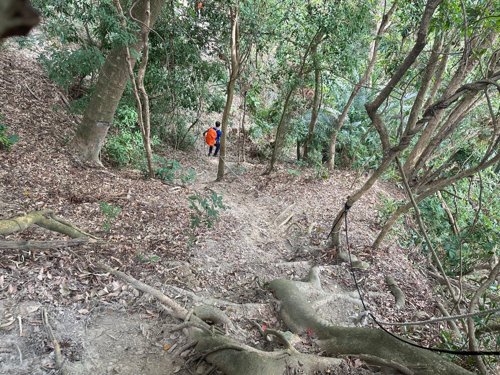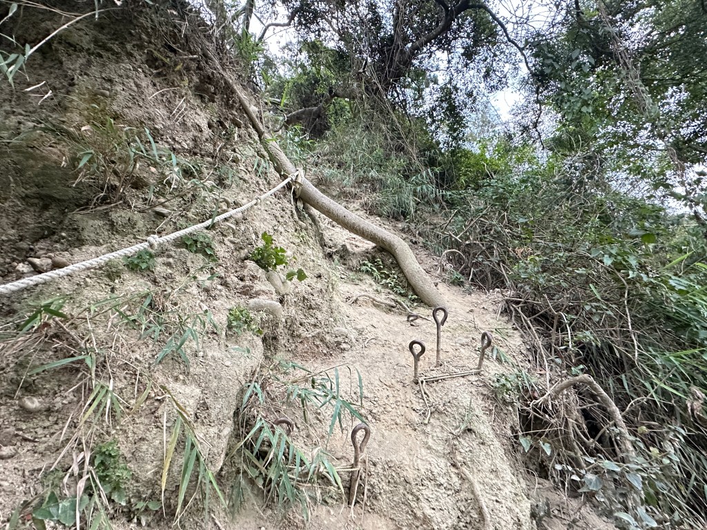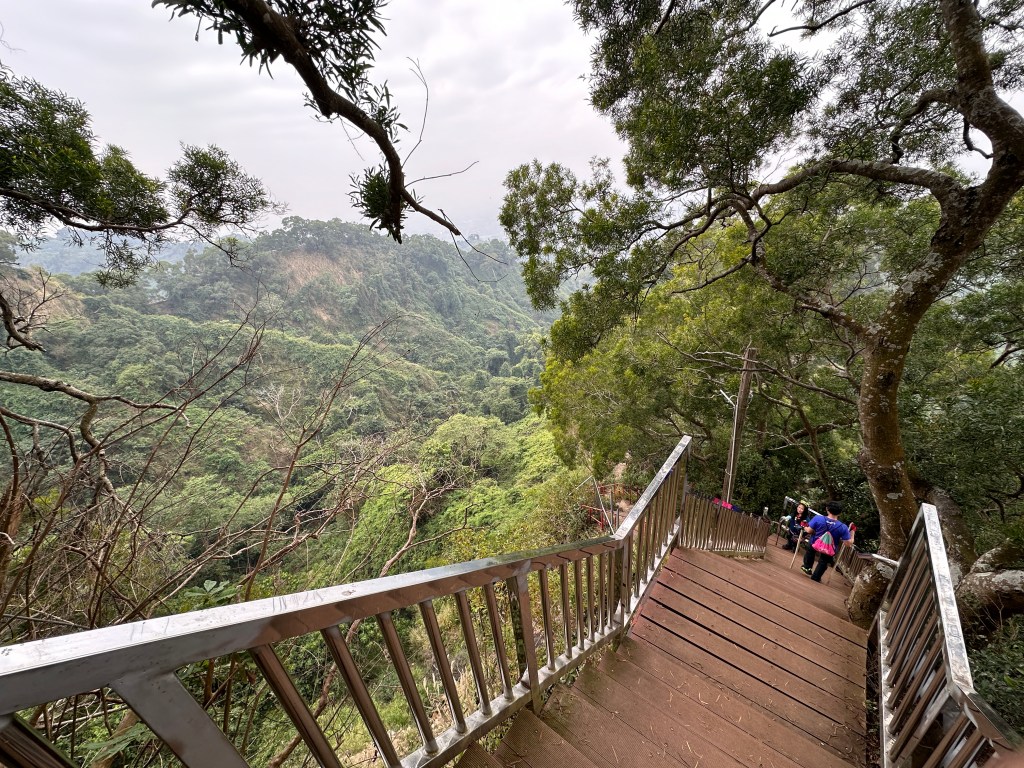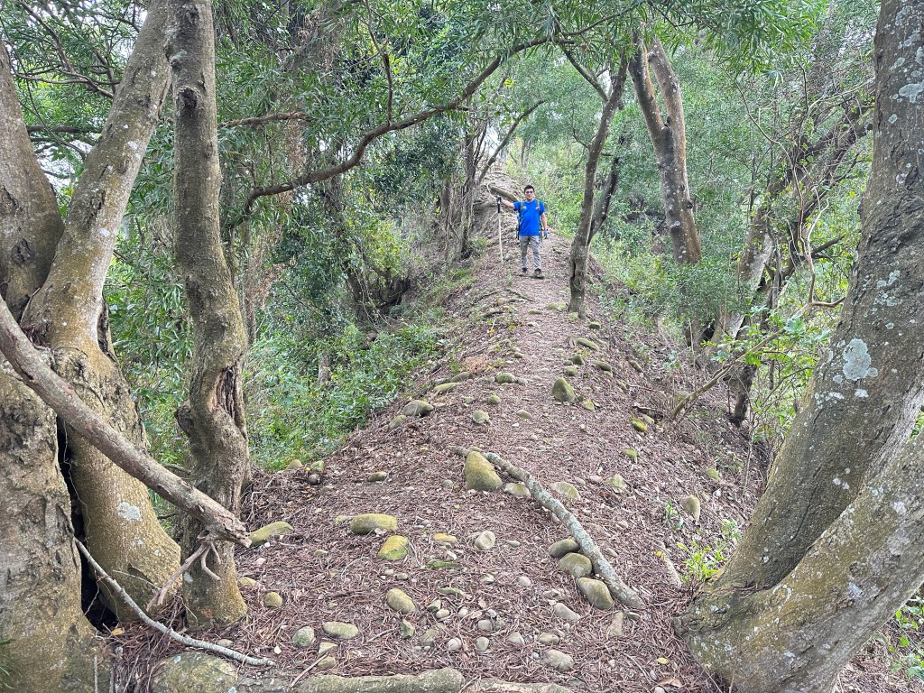 一圈的距離為3K,南線有1.5K、北線有1.2K的距離,南線從H119m陡上到H358m,再由北線一路陡下來,整個山勢就是葫蘆谷地形!整個過程都是瘦稜路徑但步道一路都是石階或木階,維護的非常良好,安全,是練腳力的好地方!