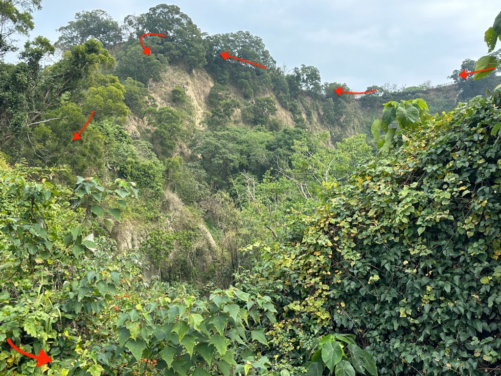 整個行走過程,有3次陡上陡下要進入高處的井仔頭茶園,這3次的垂直陡上陡下都是屬於驚險路段!