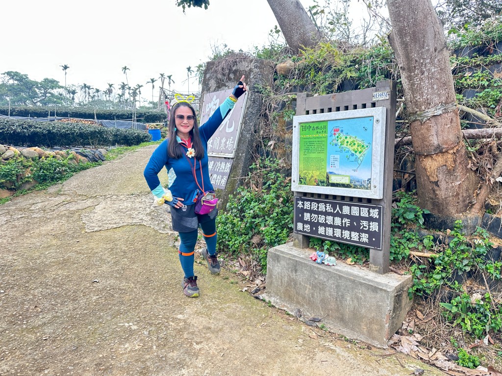 第三天,也就是2月6日這一天,我們將田中森林公園步道也納入在行程中。我們先去走了田中森林公園南北線當熱身,但也別小看這一圈!陡升陡降都各有250m左右,原本預計1小時要完成,但Smile陡上速度慢還要一路邊走邊"超詳細"拍照,像這樣?我們大概不能完成田中大小劍?