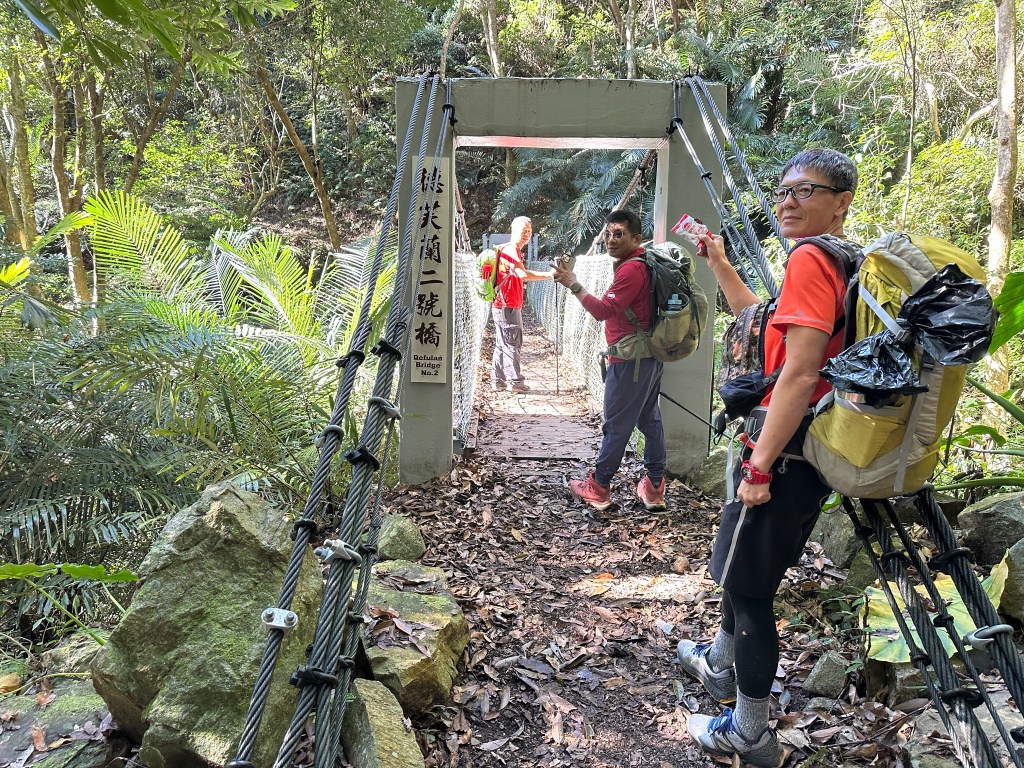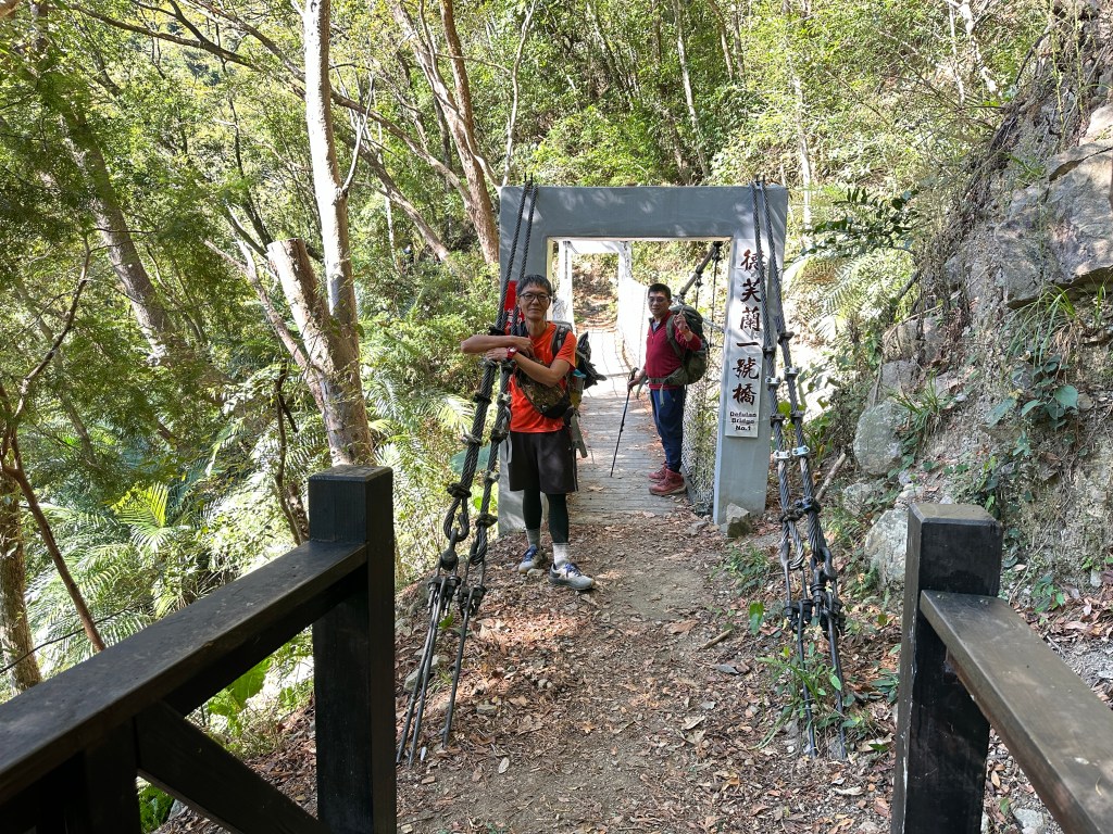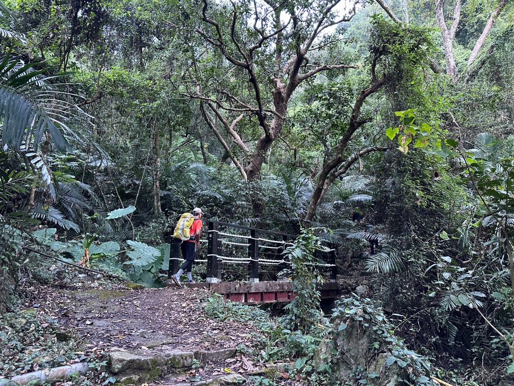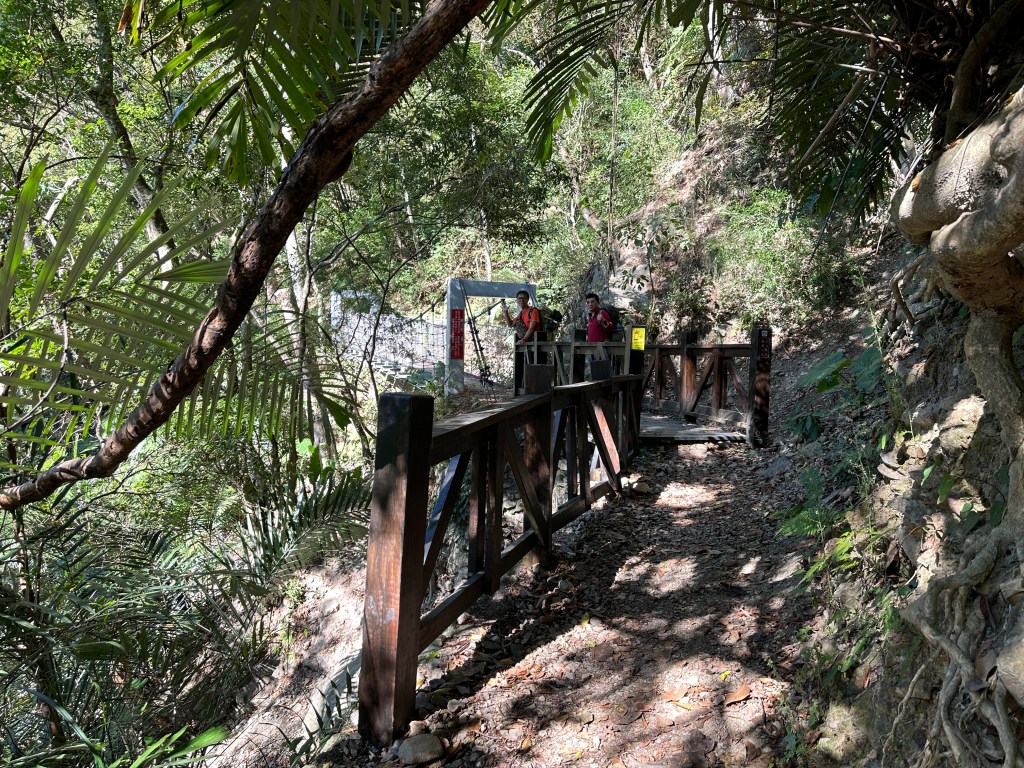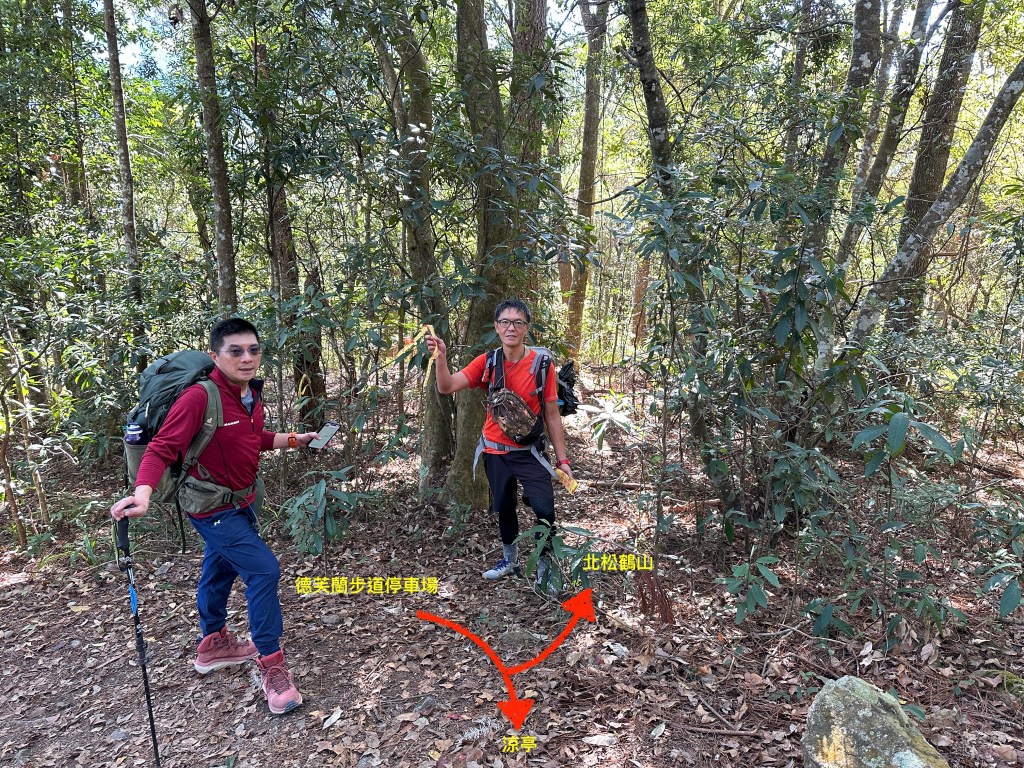 離開東峰登山口,持續沿著德芙蘭生態步道走,通過德芙蘭一號橋及二號橋,緊接著一段之字形陡上,0.7K後來到北松鶴山登山口。