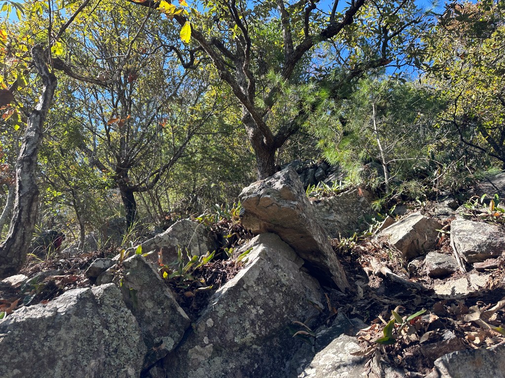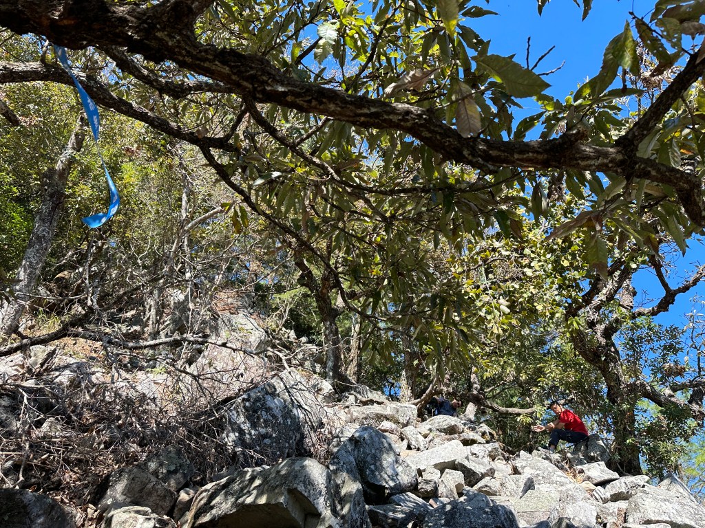 3年前挑戰過波屋東的記憶猶新啊!不確定感頓然全部消失!緊接著就是第三段的路徑了,由此到東卯山還有0.6K的距離,稜線路上有一段空曠的展望,大伙又在此耽誤了一段時間進行拍照賞景,逐步通過瘦稜及石瀑路,就來到了谷關七雄的老五-東卯山!