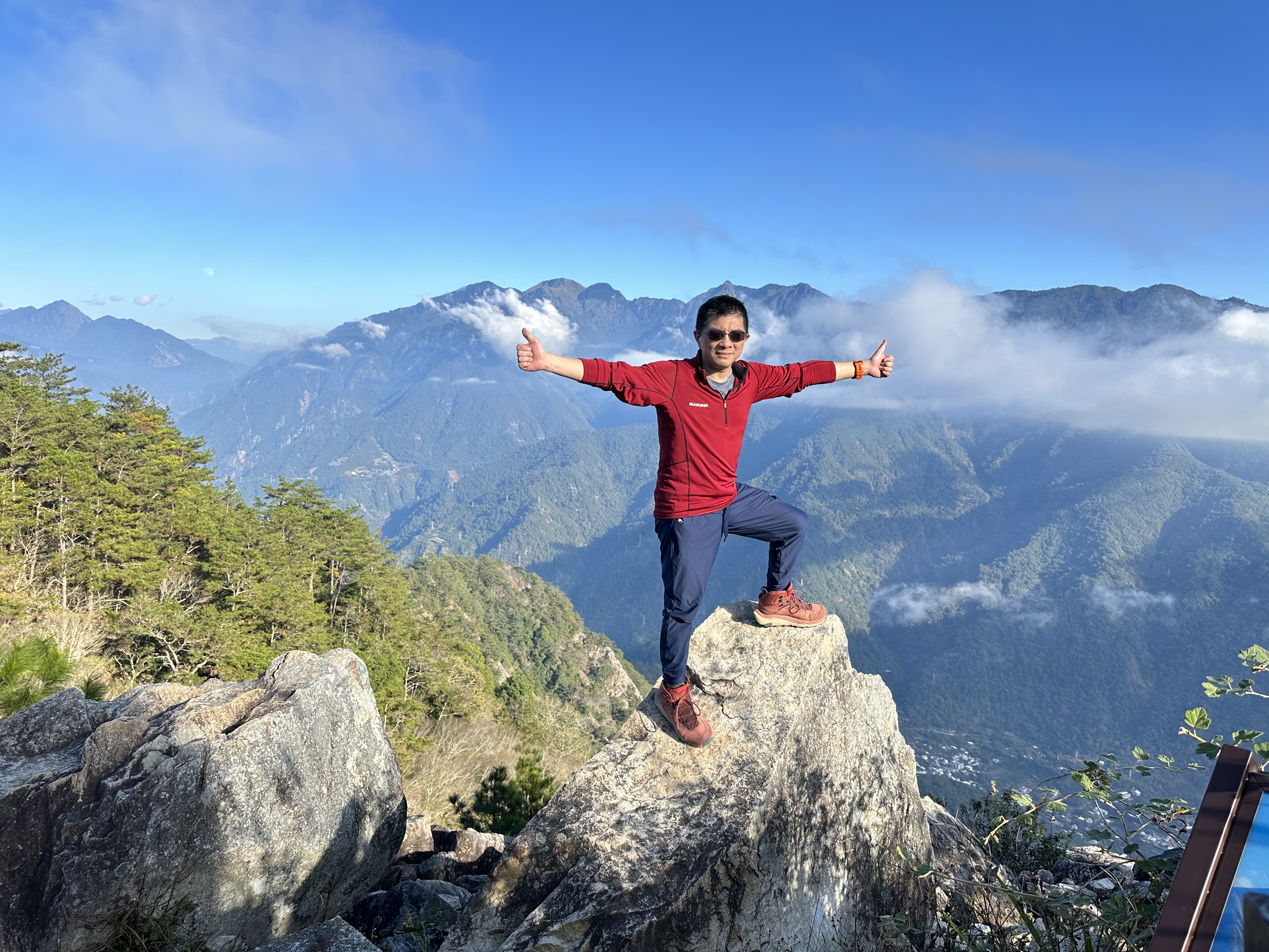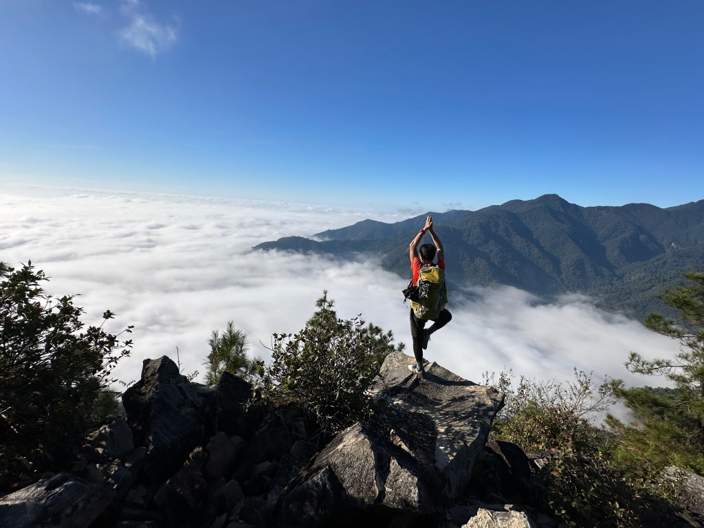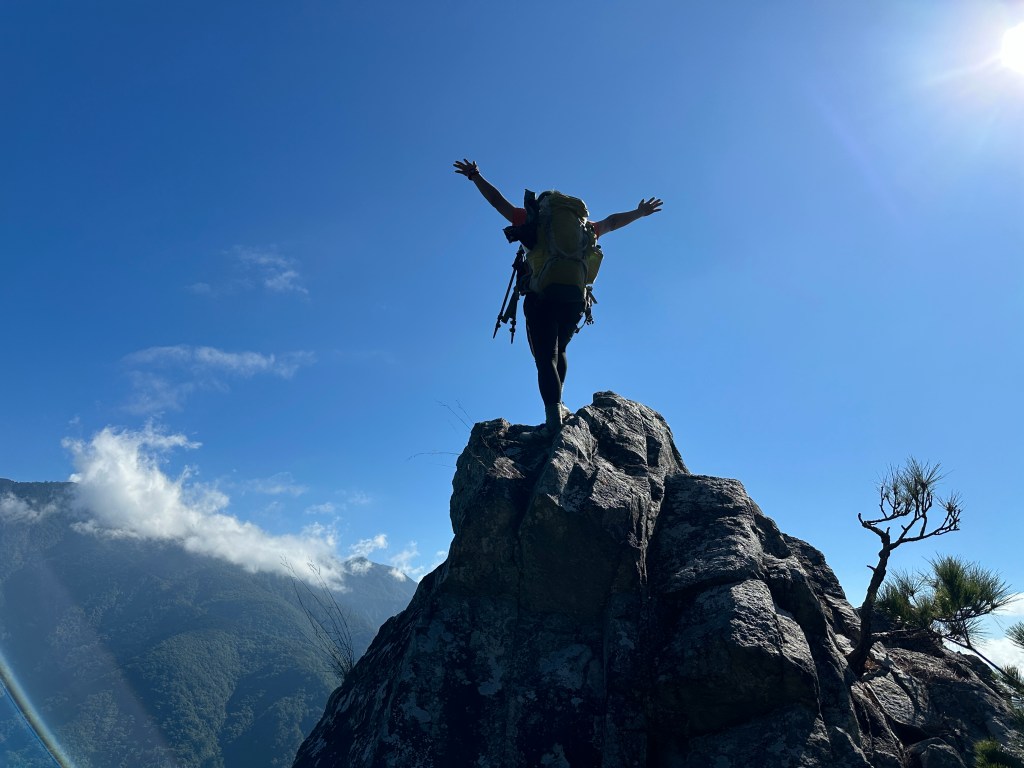 跟Smile說好在這邊拍照10分鐘就好,沒想到Smile就是要拍好拍滿!恰逢陽光普照人品大爆發大景當前,哈哈😂,在這裡就待了40分鐘!時間夠到Jun可以在這裡拍縮時錄影了!這時已經超過下午3點半,有點想哭哭,因為後面還有兩峰要走……