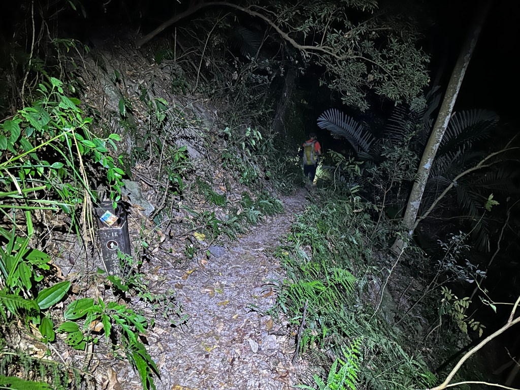 原本跟Peter講好1小時就會回來,沒想到走了兩個多小時,可以想像是一段很不輕鬆的路徑啊!回到電塔,已經是晚上20:48,其實摸黑後才要走不確定狀態的山路,個人是蠻抗拒的!真拗不過Smile,放慢速度就是!