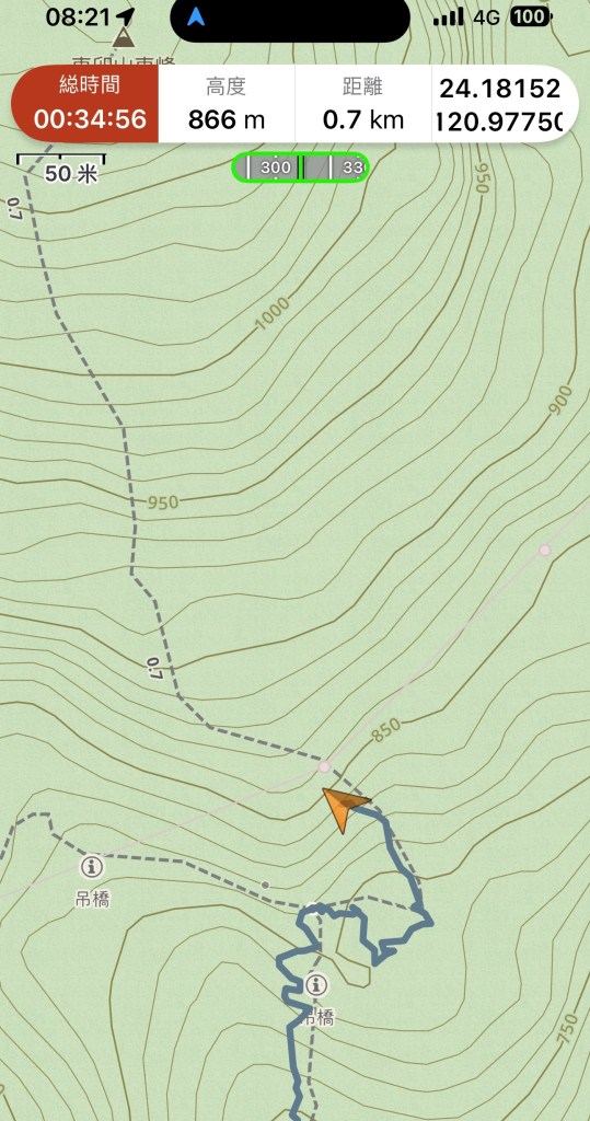 08:06 東峰登山口(H809m)(總里程0.5K)