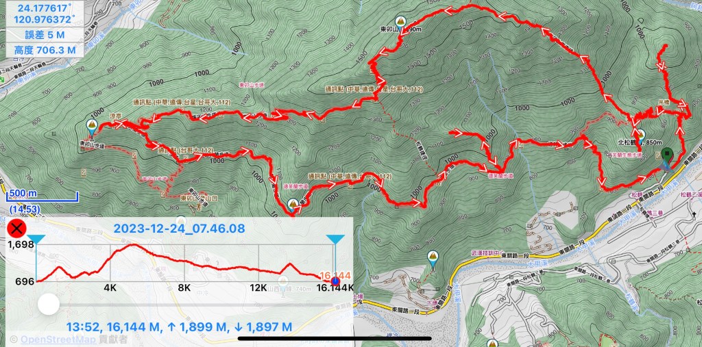 16:36-16:47 東卯山西峰(H1095m)(總里程8.9K)