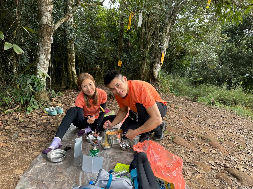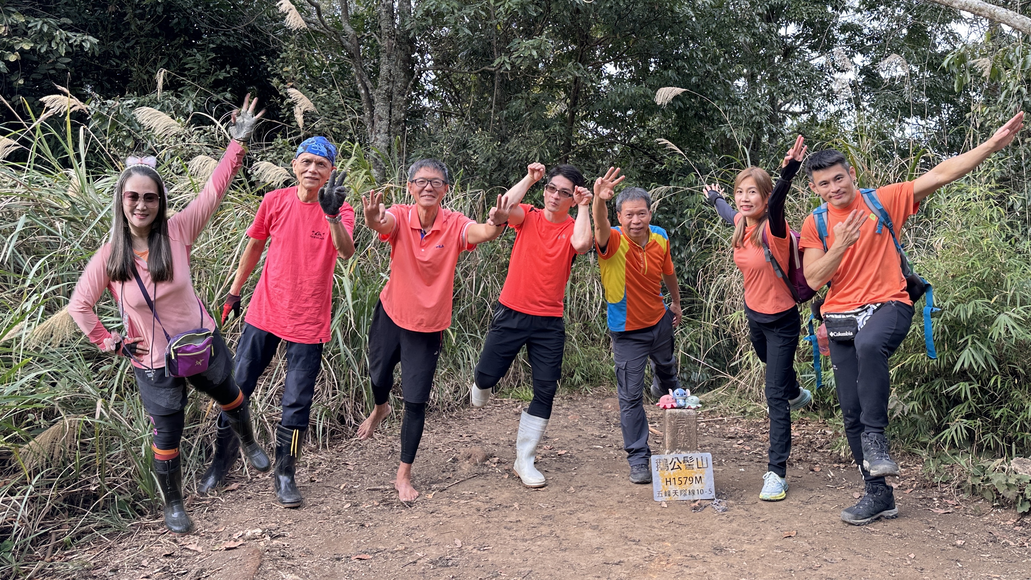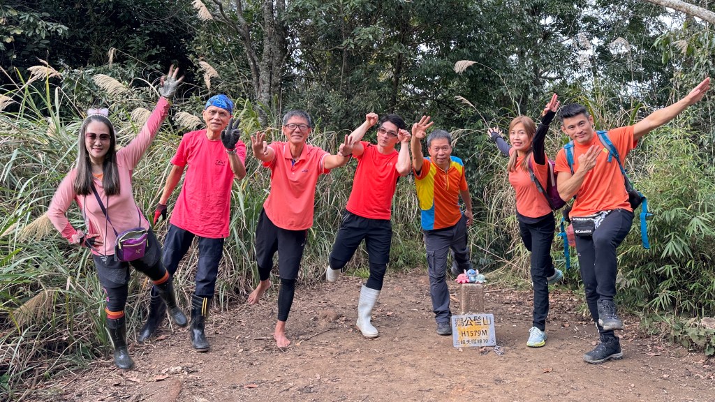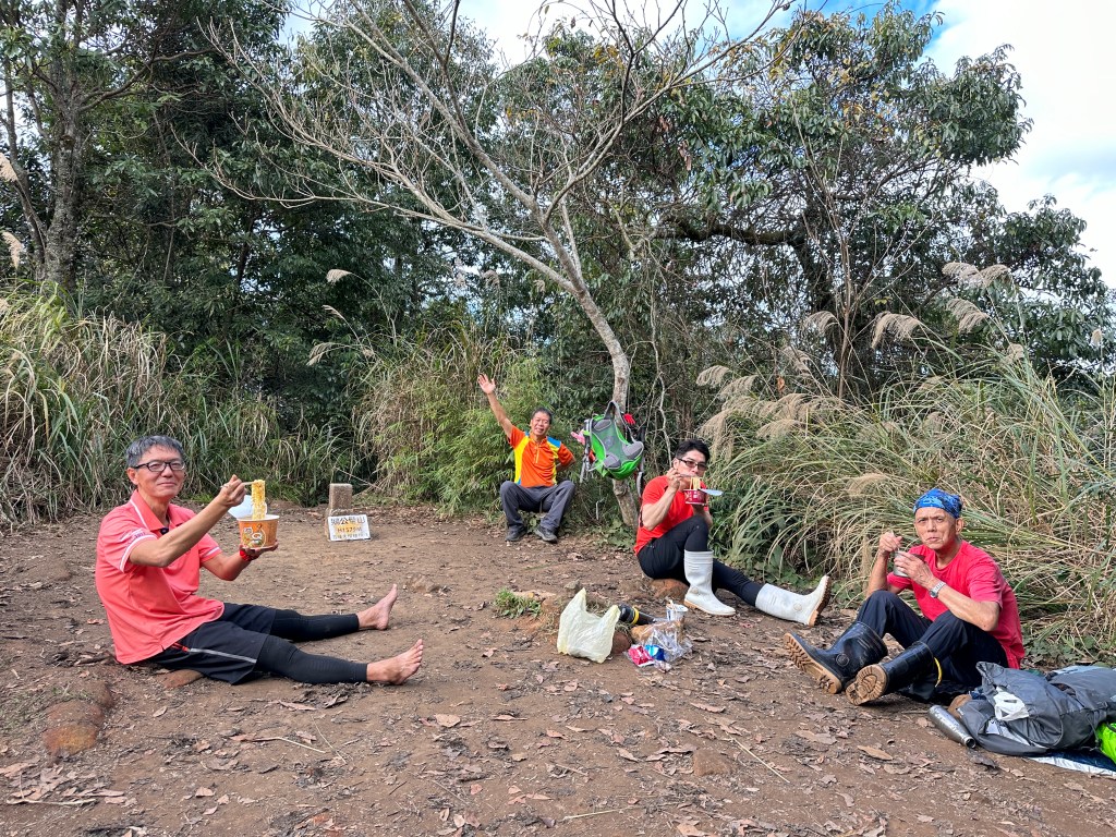 後半段走在傳統好走路線上直接抵達小百岳鵝公髻山(小百岳排名#031),這時大夥肚子都餓了,就在這裡煮起泡麵好好的吃一碗熱食,一直休到了下午4點。