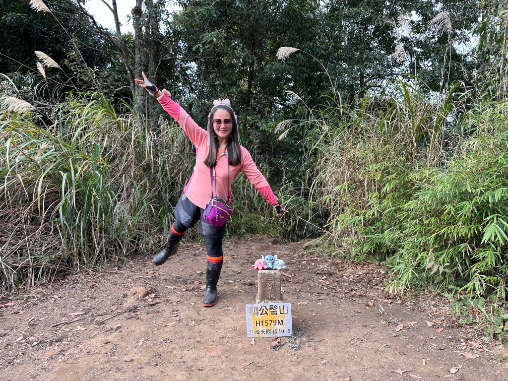 投影片:Smile在鵝公髻山西峰。今天的第一峰,山字三角點。