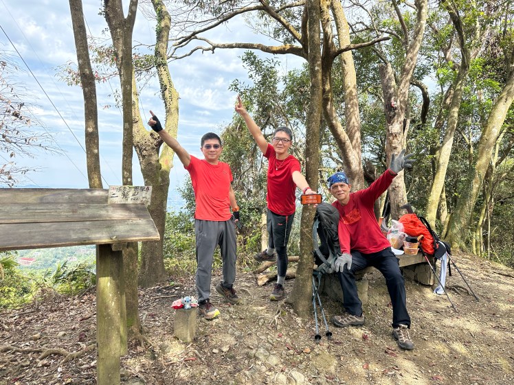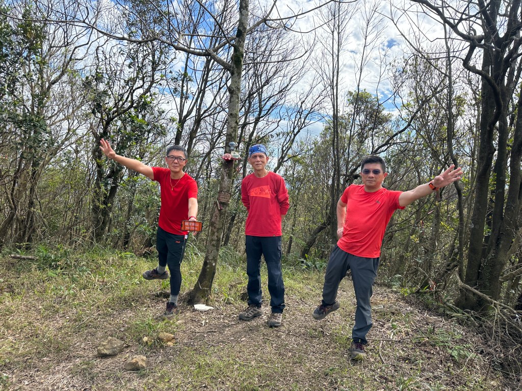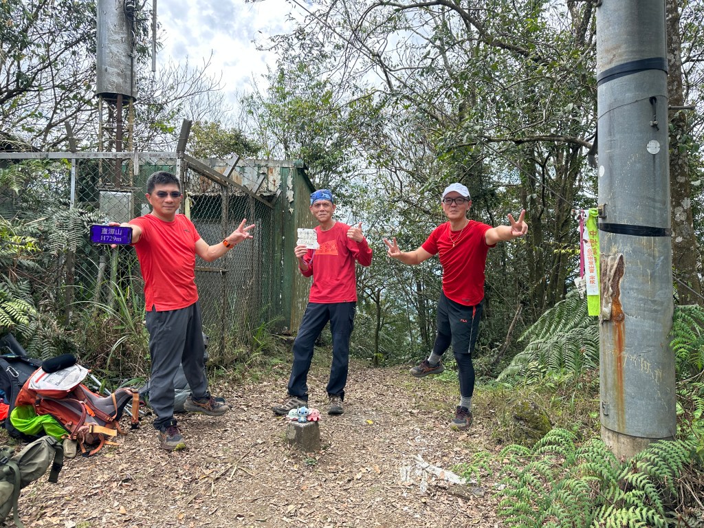 投影片:我們在直潭山東北峰!今天的第5峰。左起:Michael、我(Gosen)、Jun。