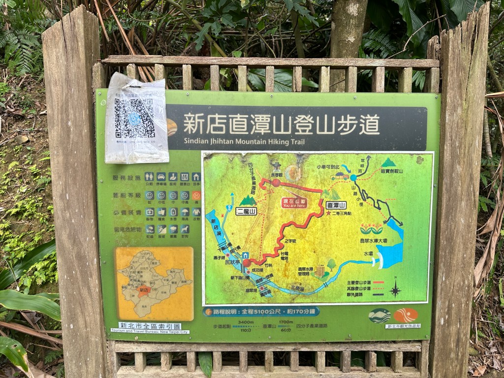 今天要走的是台北新店近郊的直潭山。早上將車停在屈尺加油站再往前50m的屈尺堰路邊停車。由二龍山農路一路陡上到二龍山,再往私人廟宇上方高點的二龍山東北峰,這東北峰已經沒有基點,也只剩Google地圖上有標示。