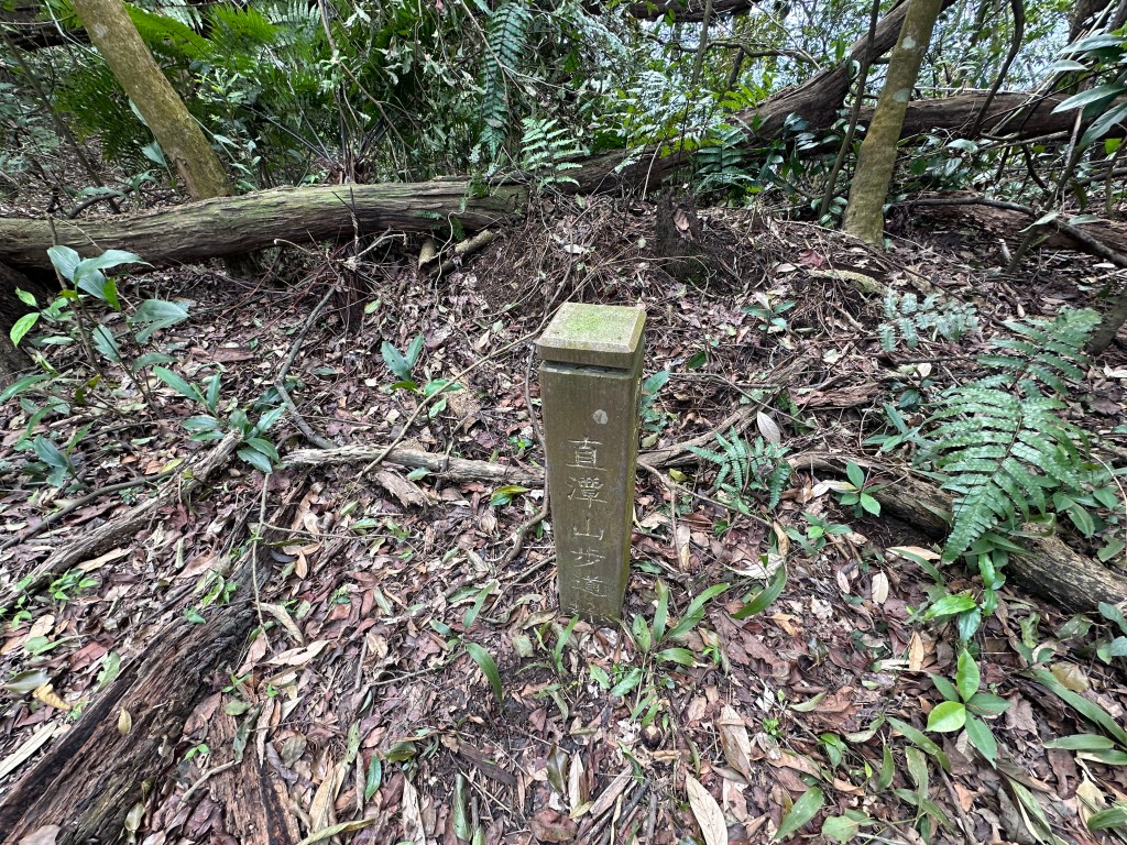 我們在直潭山這裡休息午餐一個小時,今天有大票的和信登山隊的山友們也正在此處休息。從直潭山到直潭山東北峰一直到暗寶劍山,有起伏但都是寬大的落葉路徑,是一段走起來覺得優美的路段。