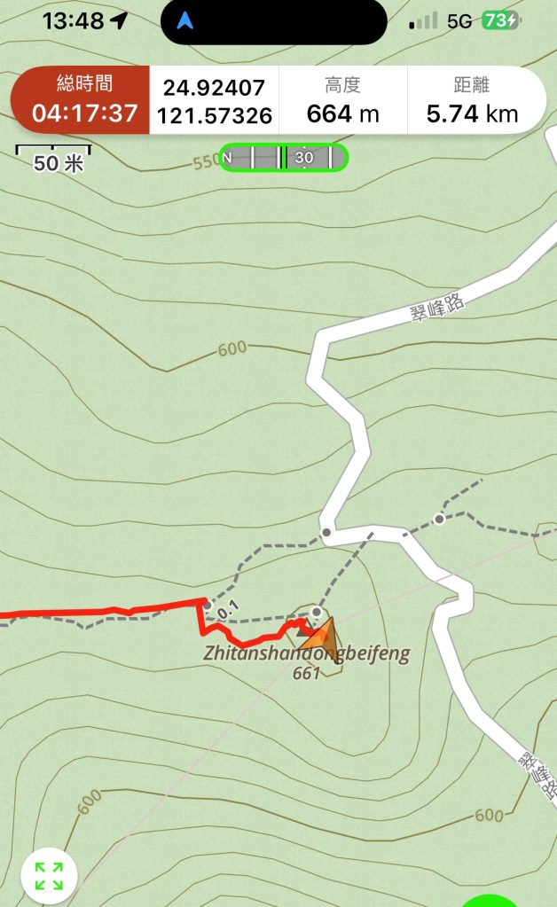 13:48-14:01 直潭山東北峰(H661m)(總里程5.7K)