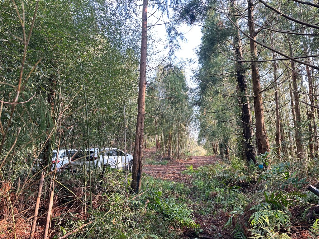 事前研究了一下地圖,車行的路線有兩條,殊途同歸,但是那一條比較好走呢?且戰且走吧!車開到再說。車行到殊途同歸岔時,發現右側的路徑比較優,左側的路徑上滿滿青苔,走右側也就是繼續前行,隨著產業道路越開越高路幅卻越來越小,我的車子若接近異物會逼逼叫,今天,車子一路逼逼一直叫!兩側的芒草一路刮著車門而上。