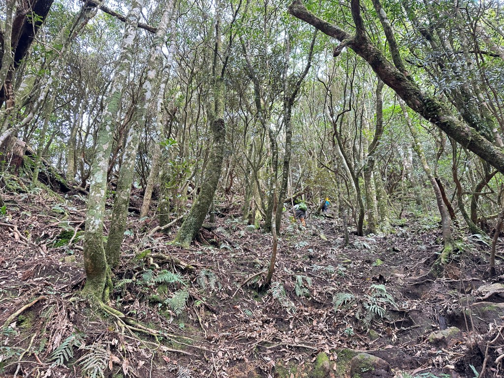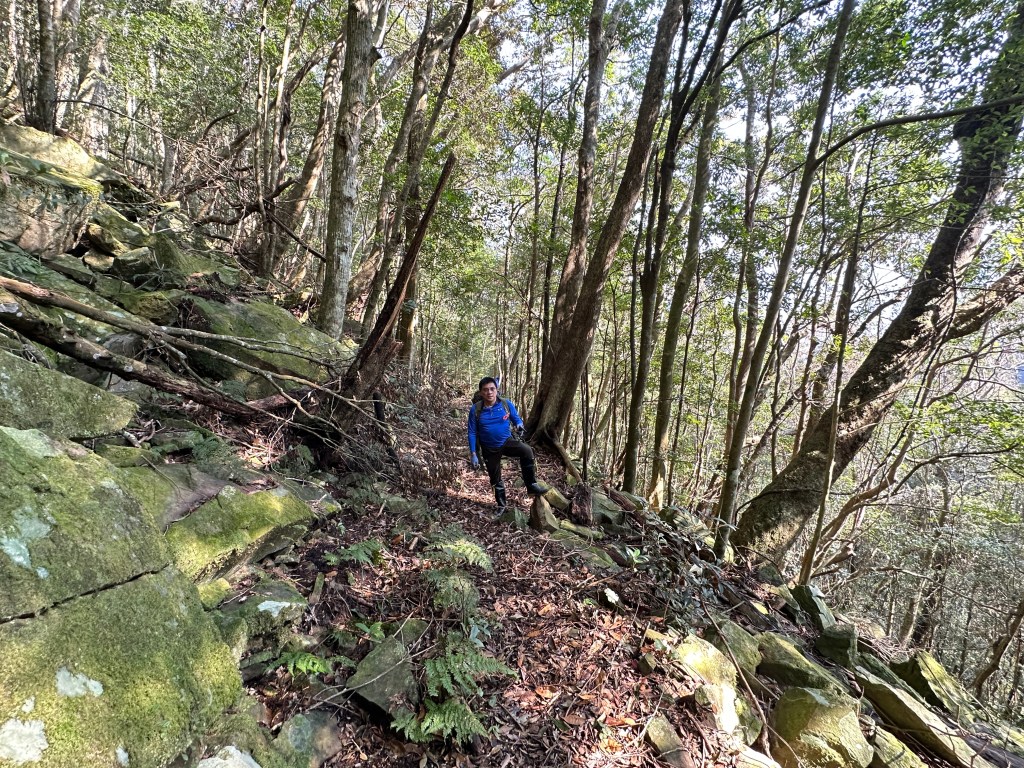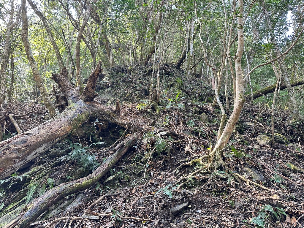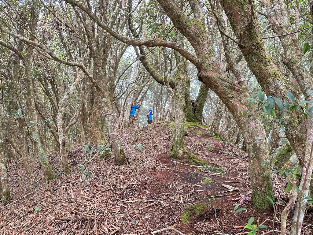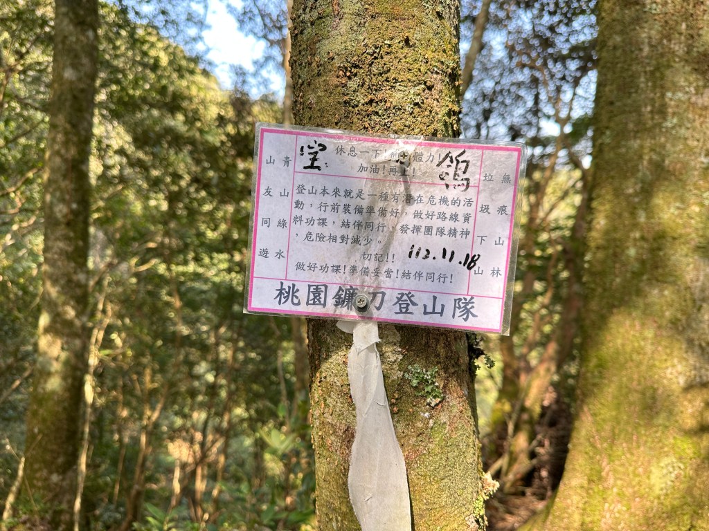 稜線路這一段的距離約有2.4K,其中在H1390m左右會經過黑森林峰,陡下時黑森林峰位於路徑岔出右側20m的小山頭上,由桃園鐮刀隊所命名並做了名牌!