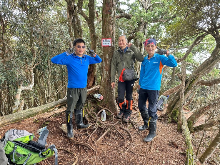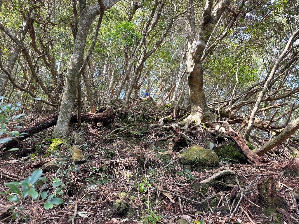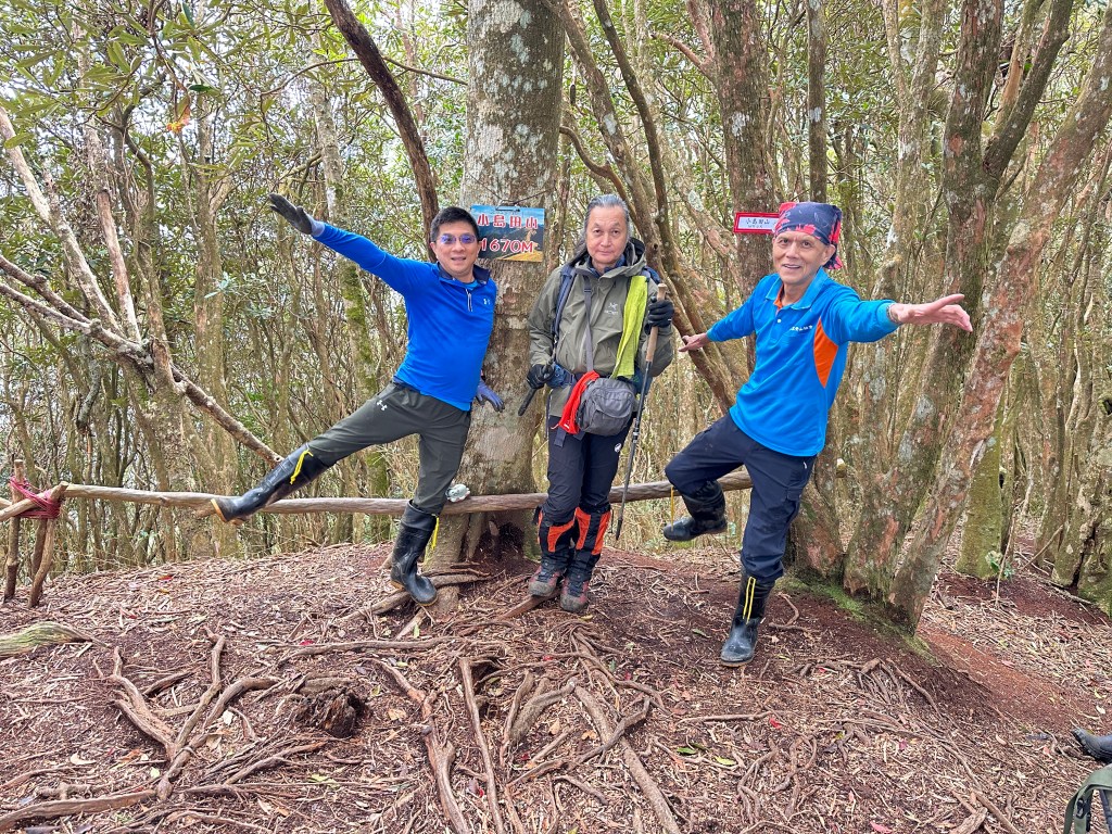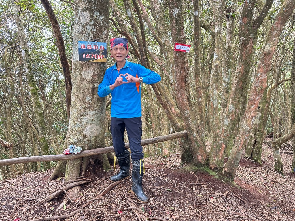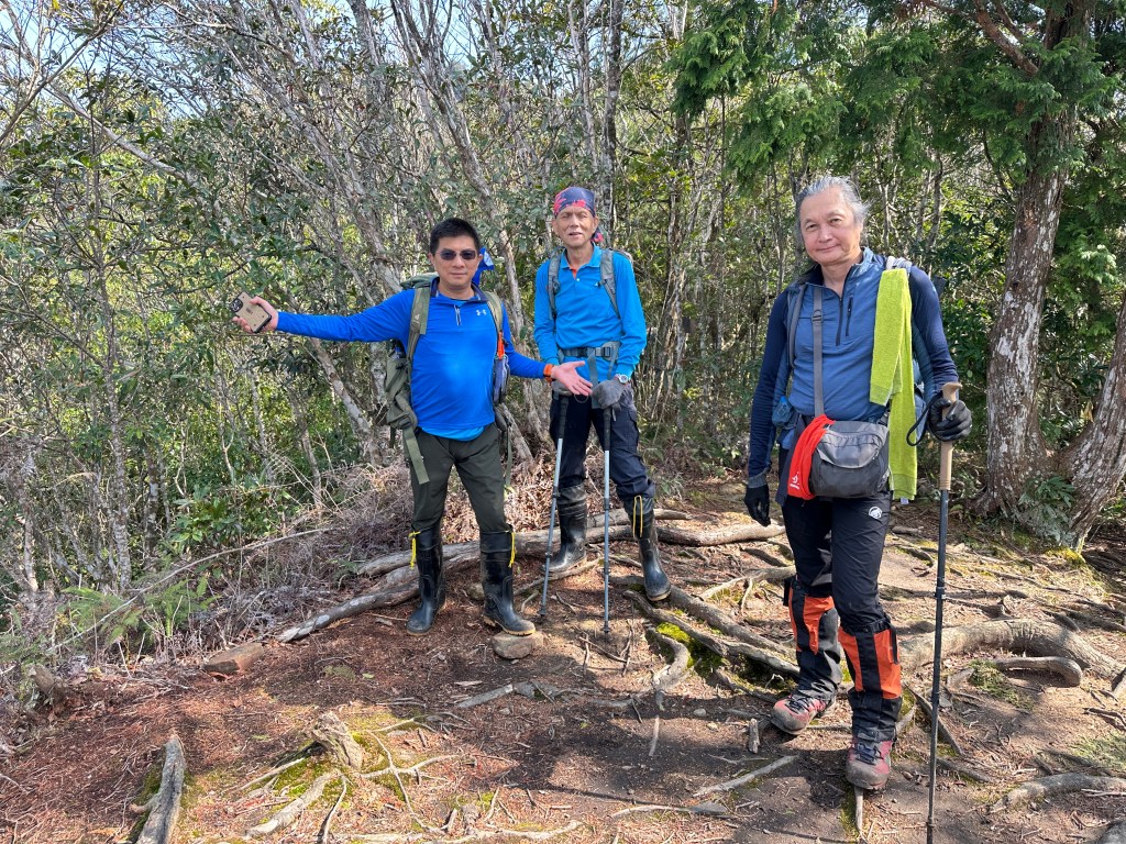由中島田山到大島田山之間的距離為0.4K,這一段一路走在杜鵑林裡很是優美,先緩上再緩上蠻輕鬆的就能抵達大島田山。Link哥提前抵達已經先煮起泡麵用的熱水,我們在大島田山這裡午餐休息了將近一個小時,這期間也有不少年輕朋友們也都走到此休息,Link哥也泡了咖啡請大家一起喝。