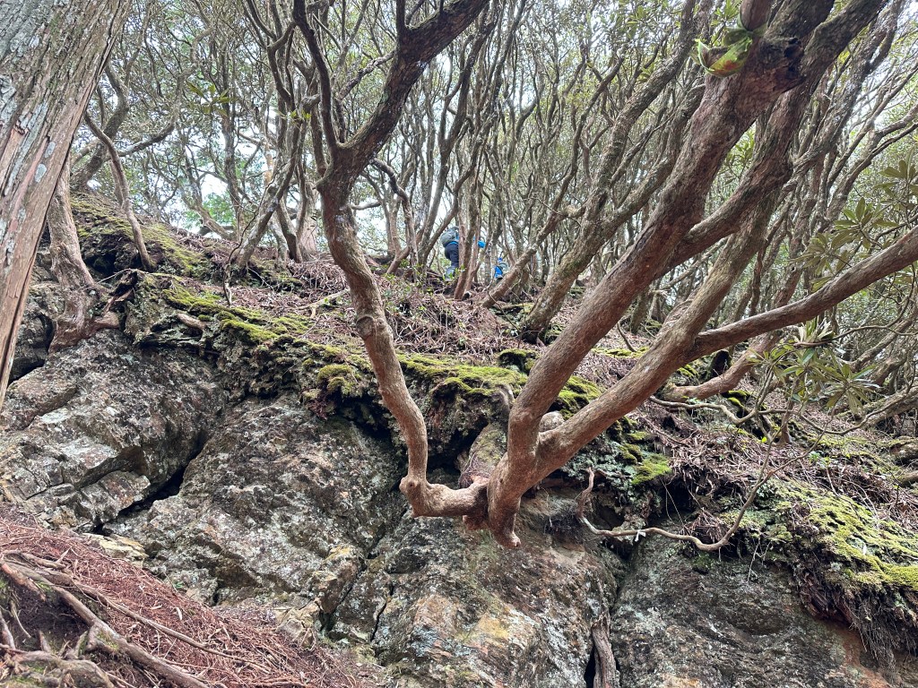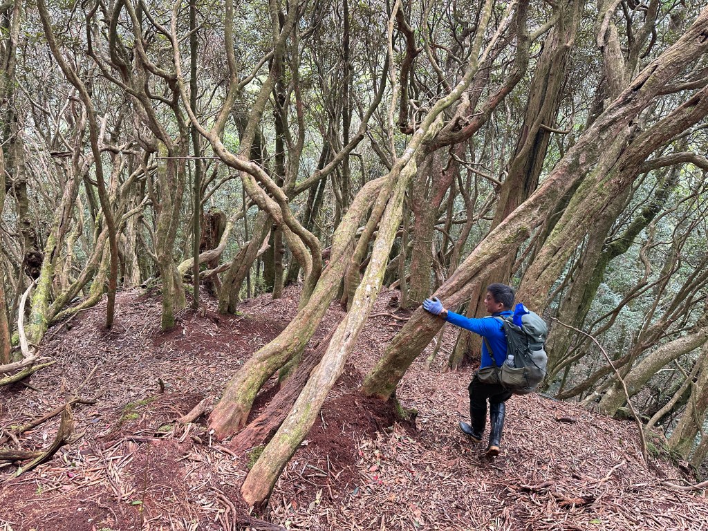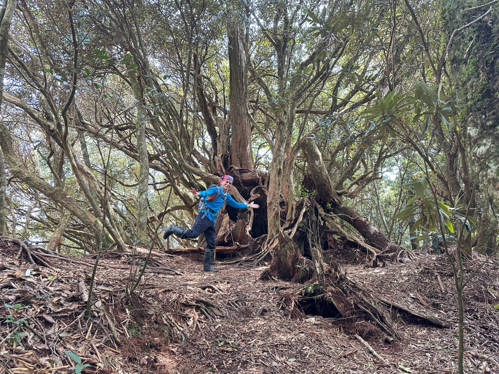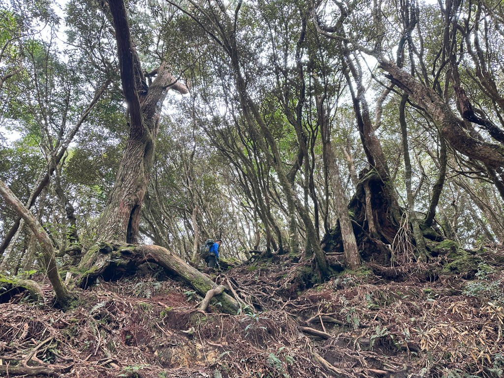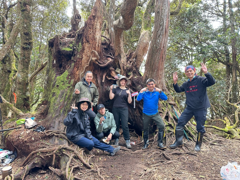 由中島田山到大島田山之間的距離為0.4K,這一段一路走在杜鵑林裡很是優美,先緩上再緩上蠻輕鬆的就能抵達大島田山。Link哥提前抵達已經先煮起泡麵用的熱水,我們在大島田山這裡午餐休息了將近一個小時,這期間也有不少年輕朋友們也都走到此休息,Link哥也泡了咖啡請大家一起喝。