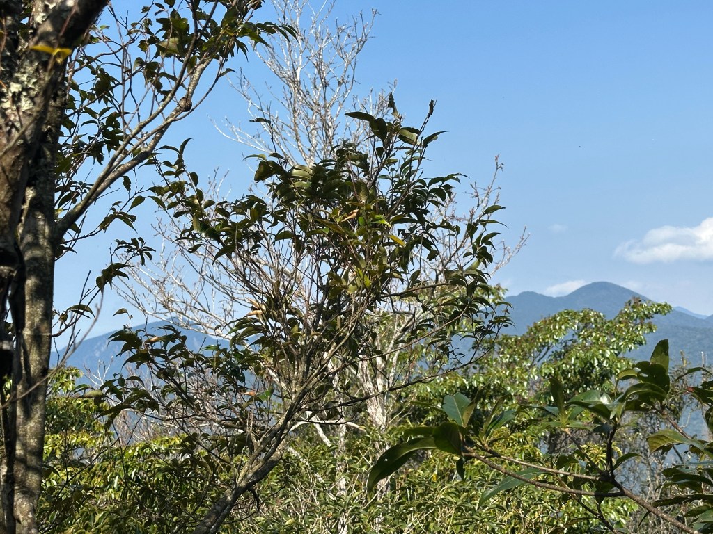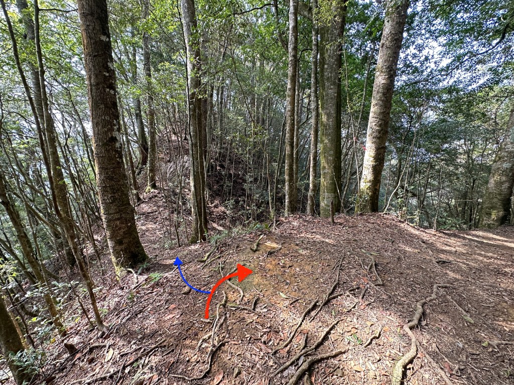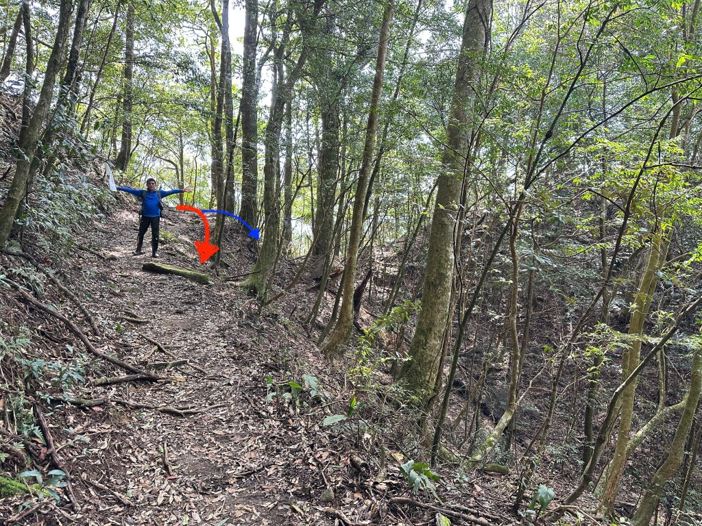 走稜線路到了接近登山口前陡下角度加大,在接上產業道路前這一段感受超美!接著穿越竹林並露出展望,可以看到遠處的那羅山稜線,接著接上產業道路,但芒草已經完全擋住路徑!稍微找一下,就可以找到右繞的路徑回到登山口。