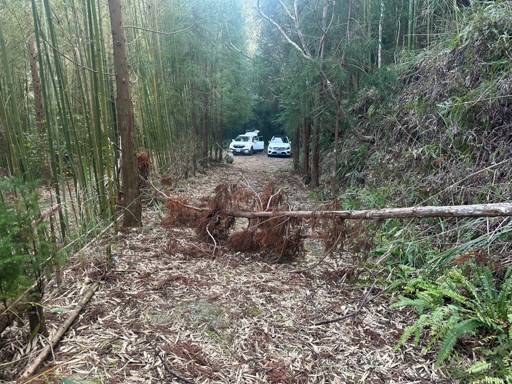 從那羅社區的竹60箱倒轉入開始一直開到黑森林登山口為止,距離上有6.24K。黑森林登山口這裡是產業道路最終盡頭的轉彎處,最多只能停約4台車,還得要預留迴轉空間!