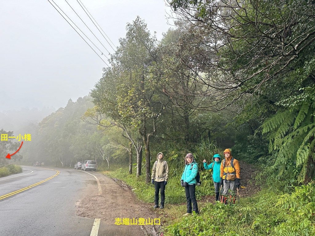 請朋友們直接利用Google導航到東眼山田一小棧,這裡是登志繼山的停車處,離志繼山登山口為200公尺的距離。停車的部份可以分為兩部份,路邊柏油路及泥土廣場,其中路邊柏油路約可停到3台車,泥土廣場約可停6至7台車,但下雨天前後非常泥濘。