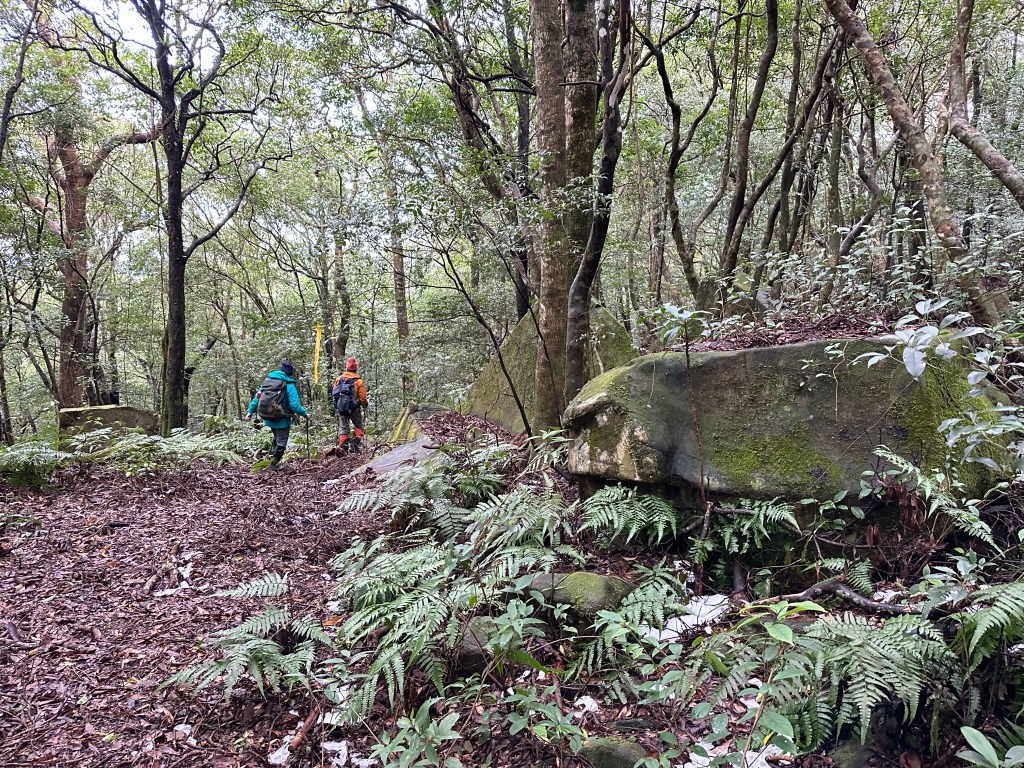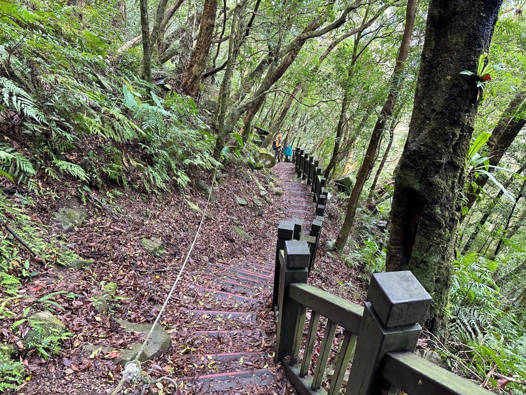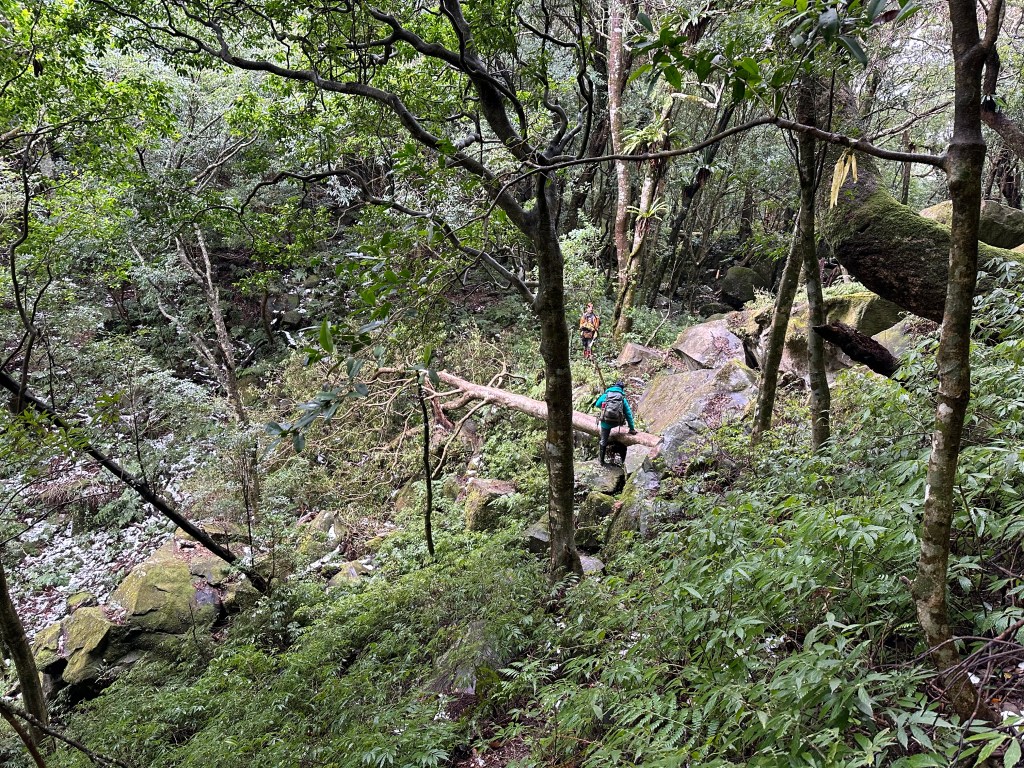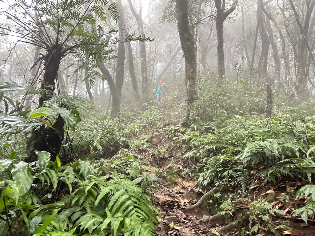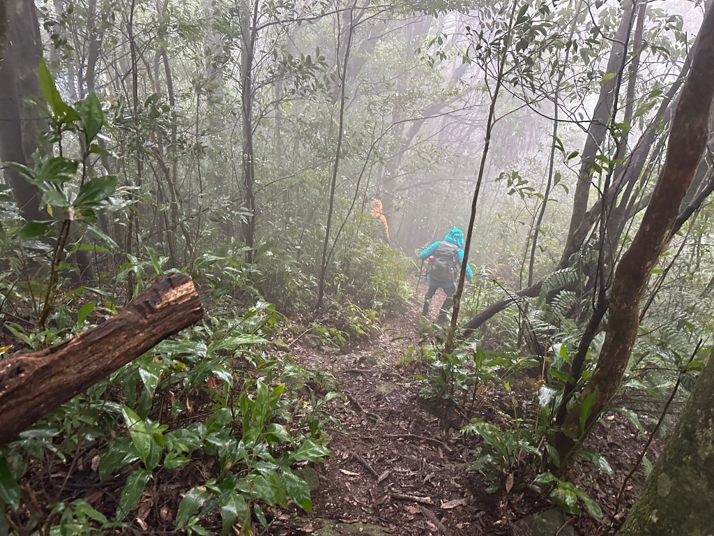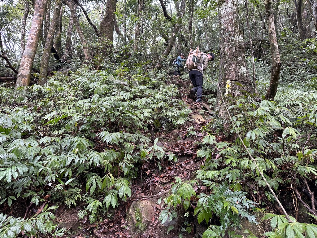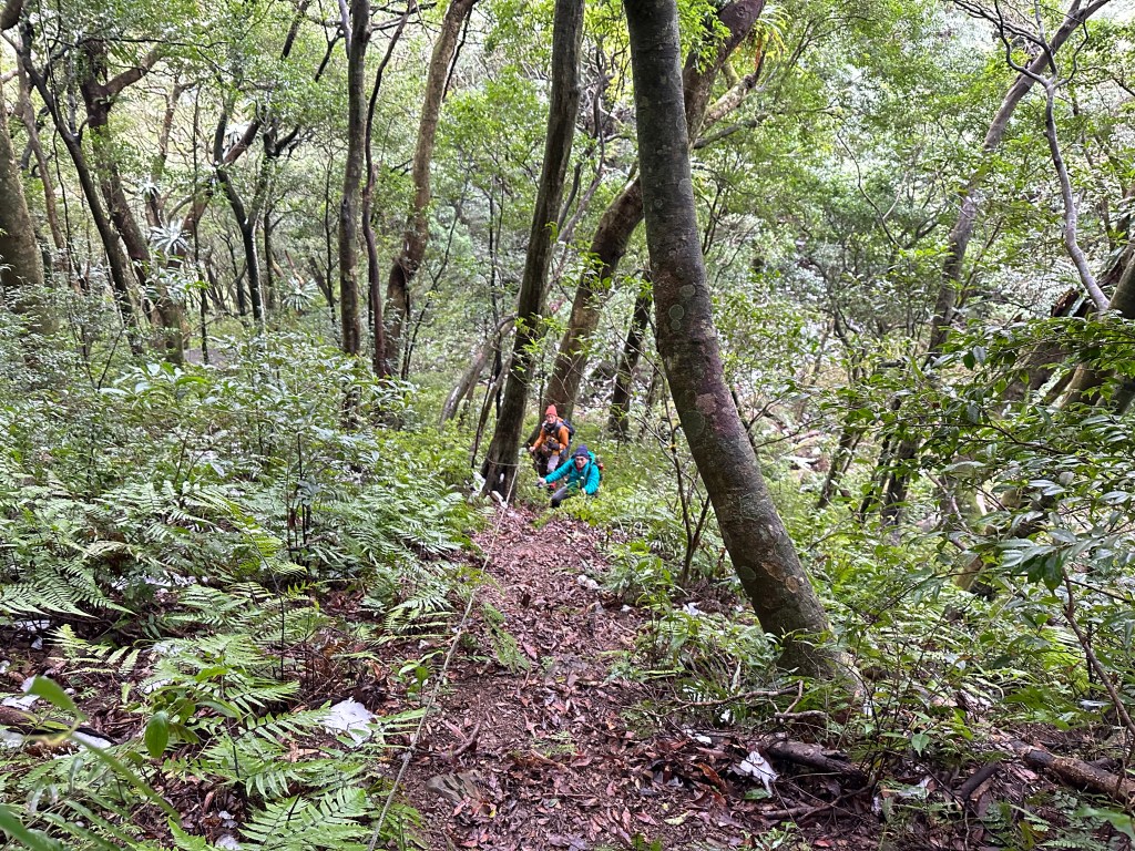 少人走的路線布條清楚,被標記為艱難路線,接近親子峰步道前轉為林道,接上林道前有一段極陡峭,在陡下時需注意。實際走過後,覺得南稜線不算很”艱難”?