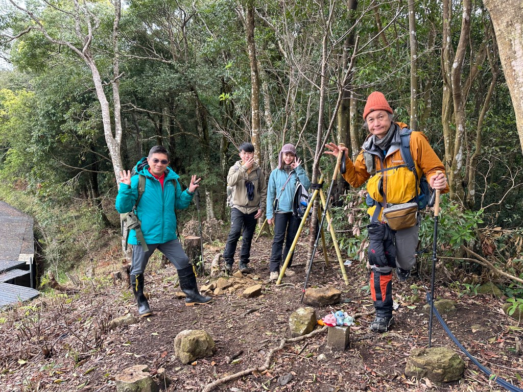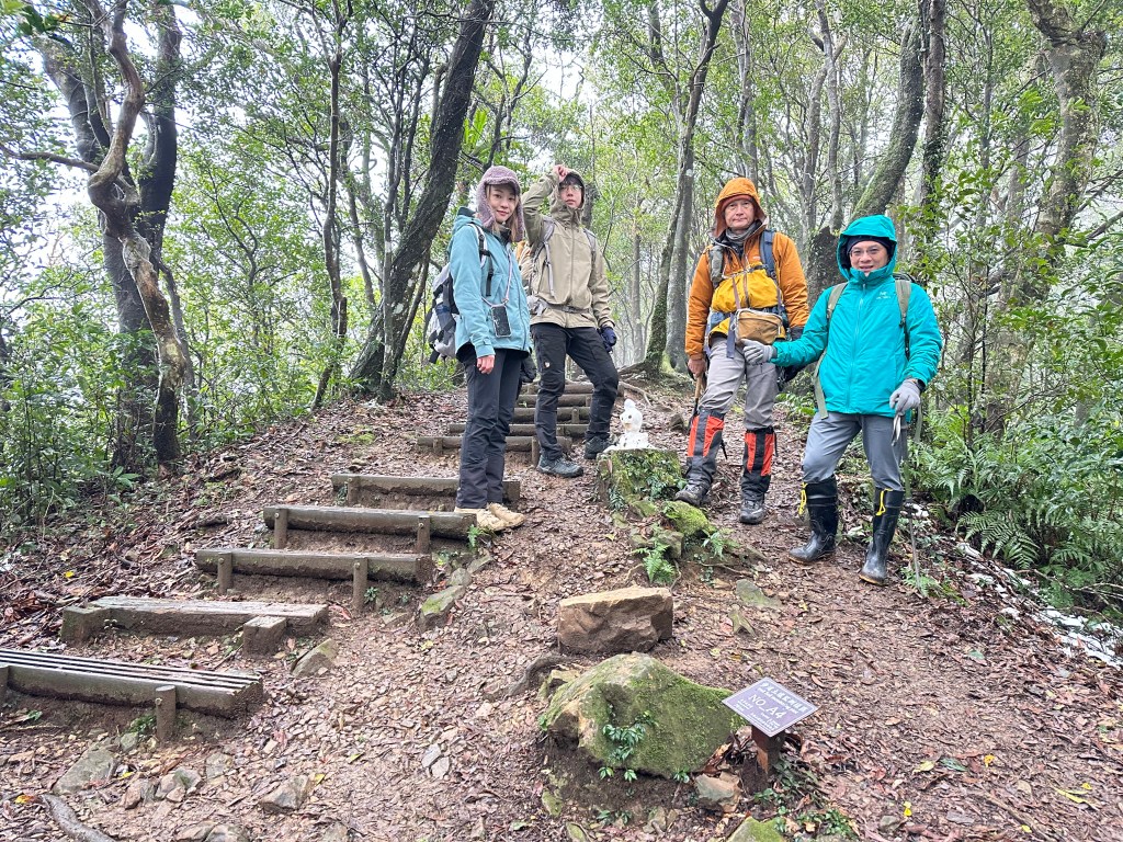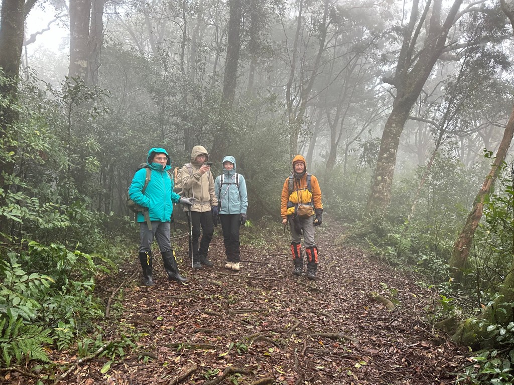 可是,Smile還是不放過我們!既然要走,得畫出一個"O"型來走,還要加上東眼山南稜線這條比較少人走的路線!O型症候群的O型小姐,O Ley, O Ley O Ley O Ley…,一直魔音穿腦,繞樑不去啊!本想約Link大哥,但距離他住的台中比較遠,想想應該不會參與?沒有想到,Link大哥,一口答應!開了2小時的車過來與我們會合。另外,David再約美女Wendy同行,一行五人,出發!